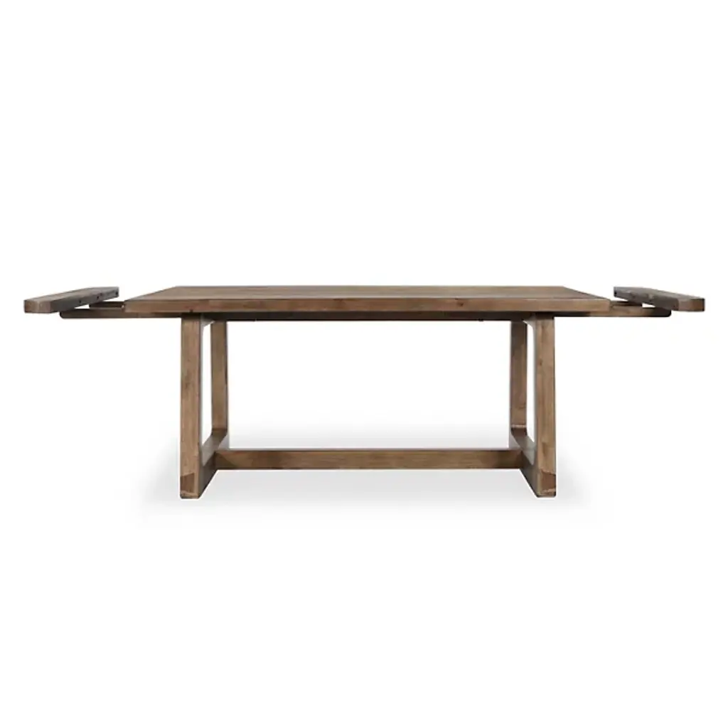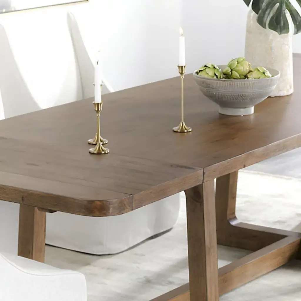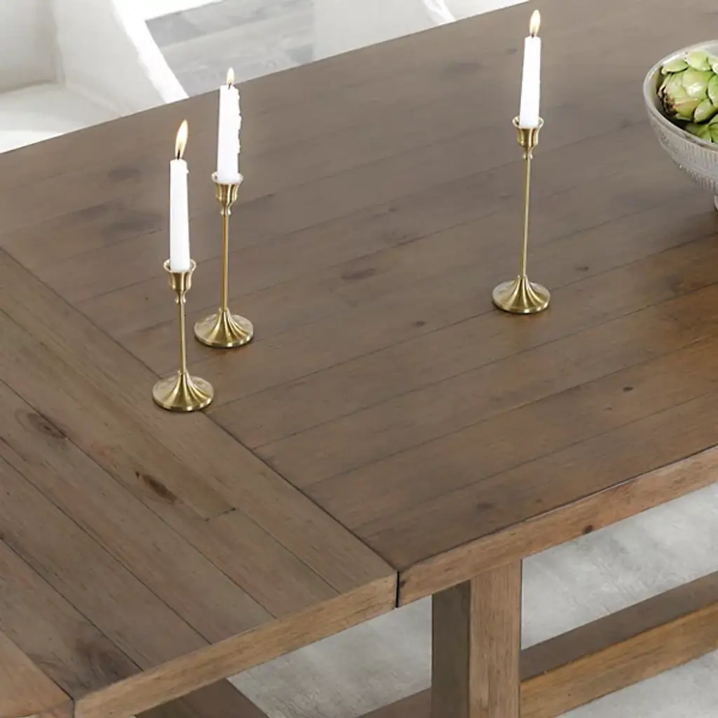 The Lyra Extendable Dining Table from Classic Home centers on its ingenious extendable design, transforming from intimate six-person dining to generous ten-person feasting with slide-out extensions. Crafted from sustainable pine wood, the table celebrates natural wood characteristics, including distinctive grain variations and authentic knots. The modern pedestal base provides stable support while creating more legroom for diners. This adaptable dining solution transitions effortlessly between everyday meals and special occasions, making it ideal for homes where entertaining frequently shifts between small gatherings and larger celebrations.