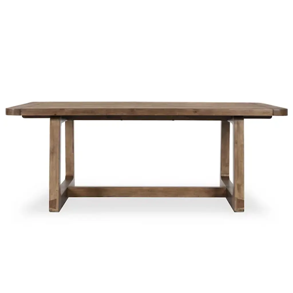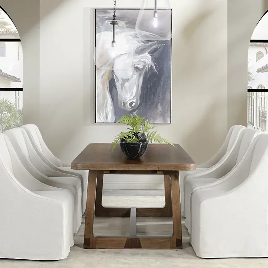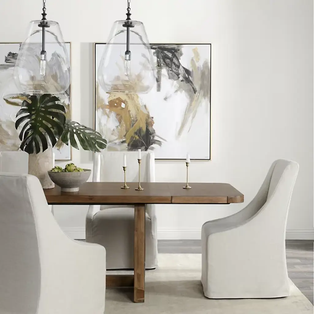 The Lyra Extendable Dining Table from Classic Home centers on its ingenious extendable design, transforming from intimate six-person dining to generous ten-person feasting with slide-out extensions. Crafted from sustainable pine wood, the table celebrates natural wood characteristics, including distinctive grain variations and authentic knots. The modern pedestal base provides stable support while creating more legroom for diners. This adaptable dining solution transitions effortlessly between everyday meals and special occasions, making it ideal for homes where entertaining frequently shifts between small gatherings and larger celebrations.