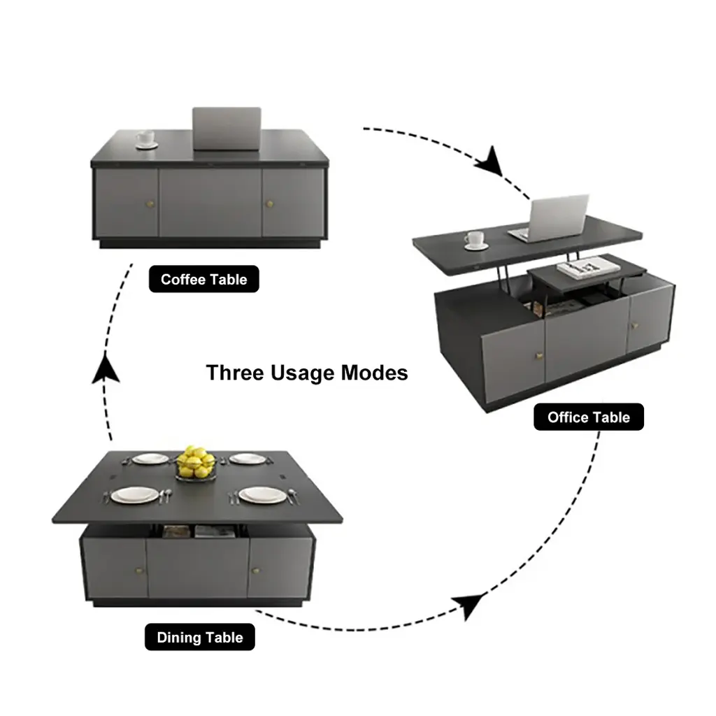 Multi-functional centerpiece with generous storage and premium hardware. Adjust tabletop for work or dining, while smooth buffer hinges and child-safe edges simplify daily life.