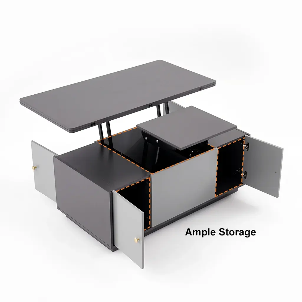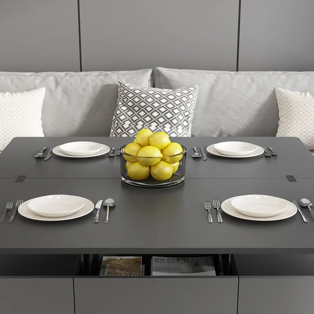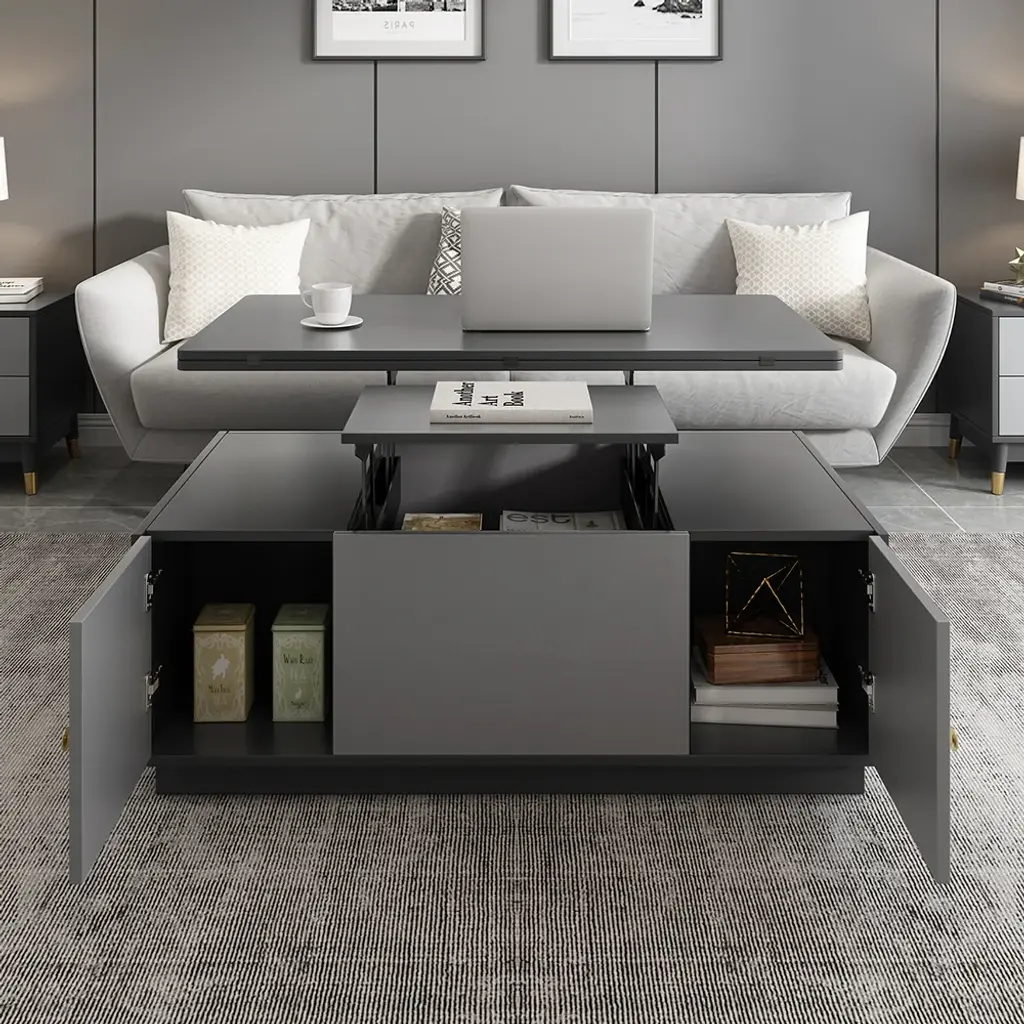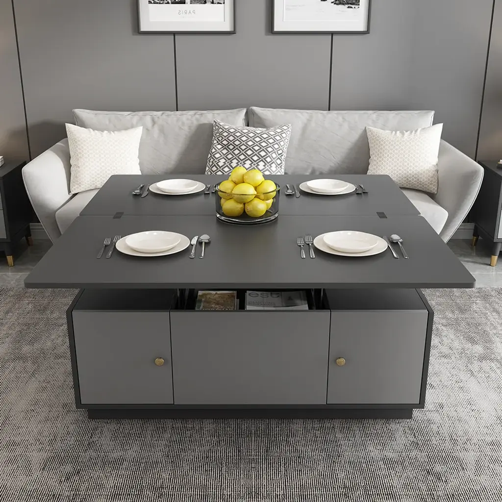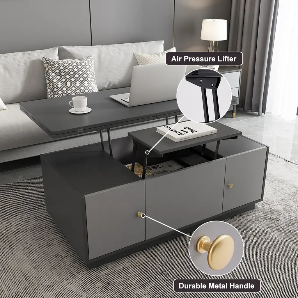 Modern Gray Multi-Functional Rectangle Lift-Top Coffee Table Extendable With Storage