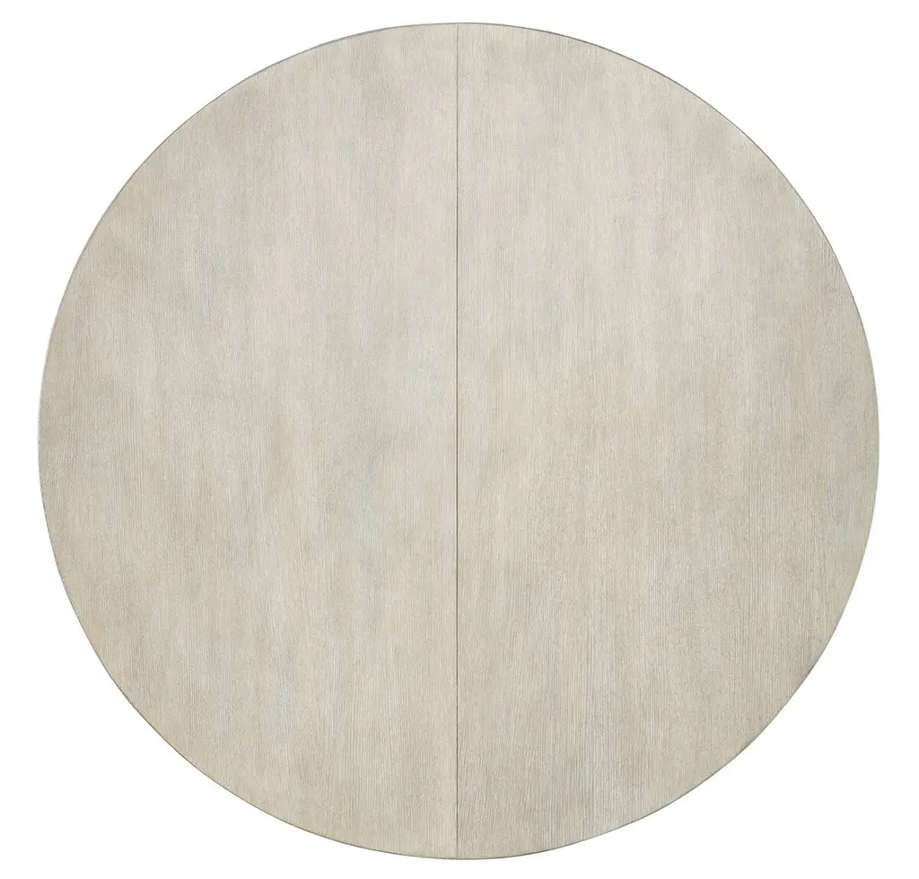 Inspired by decades of design movements with an unmistakably modern aesthetic that transcends time, the Modern Mood Round Dining Table is a statement piece with a softly sophisticated profile. Featuring metal banding accents on the base, it is crafted of Quartered Oak Veneers. With one 18-inch leaf, the table extends up to 72 inches round.