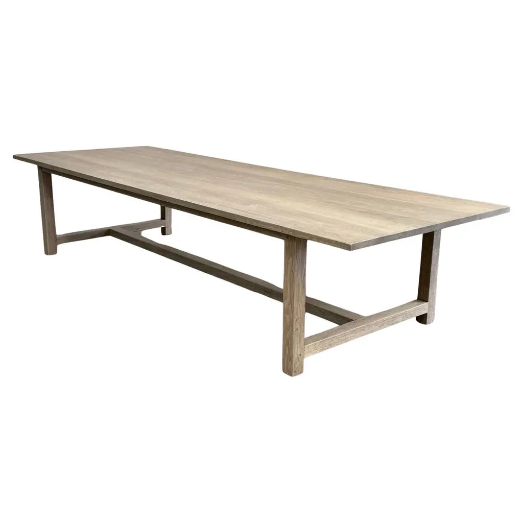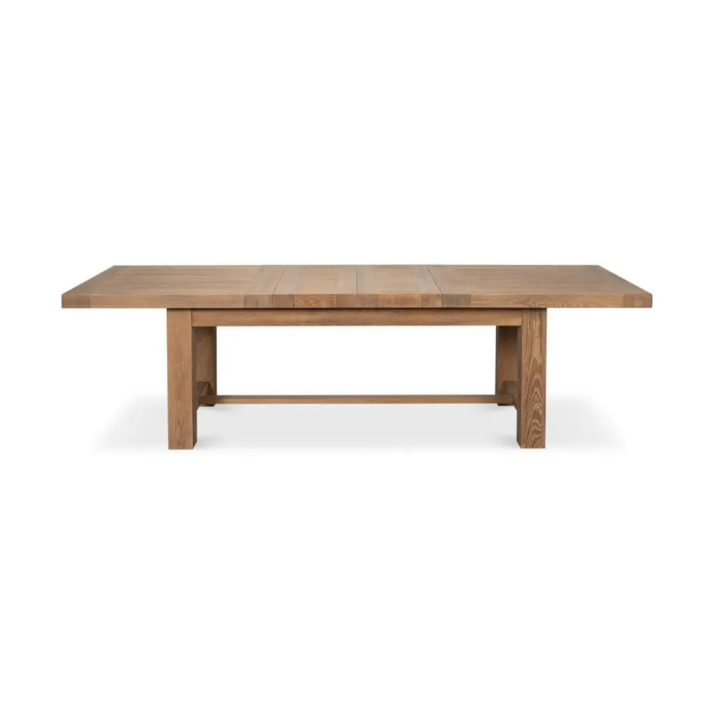 Crafted from natural oak and finished in our signature Dusty Oak tone with a refined cerused texture, the table highlights the natural grain with a softly weathered character that suits both rustic and modern interiors.The rectangular top extends from 78" to a generous 110" using two 16" leaves, offering seamless versatility for intimate dinners or large-scale entertaining. Clean lines, architectural legs, and a grounded silhouette echo Arts & Crafts traditions, reimagined in a lighter, more relaxed California-modern style.Durable, tactile, and quietly bold, this dining table elevates everyday moments with organic warmth and thoughtful proportion. Perfect for modern farmhouses, transitional, or organic modern homes.Dimensions: 110" W (open) / 78" W (closed) x 39" D x 30" Hwith two 16" leaves