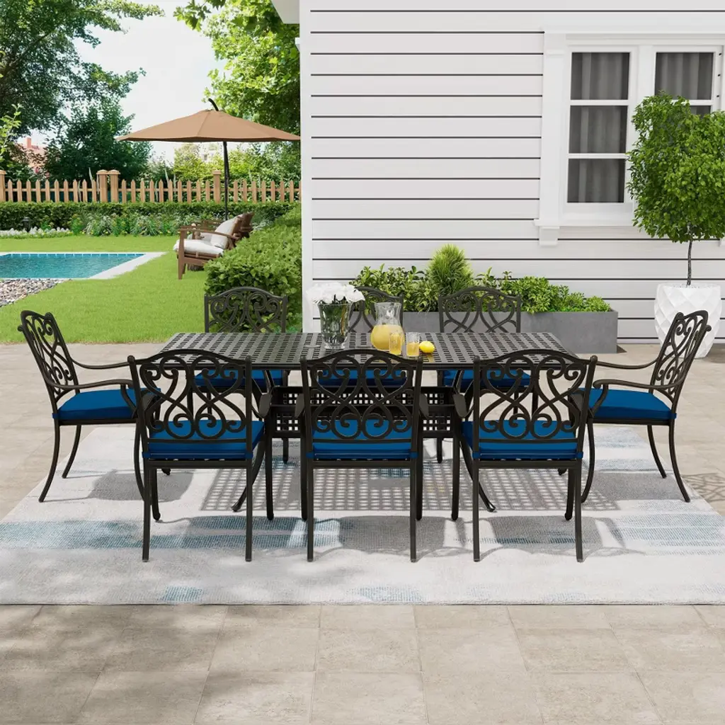 Mondawe 9 Pieces All-weather Outdoor Dining Set With 8 Dining Chair & Extendable Table Blue