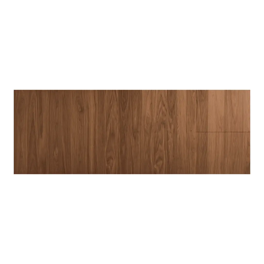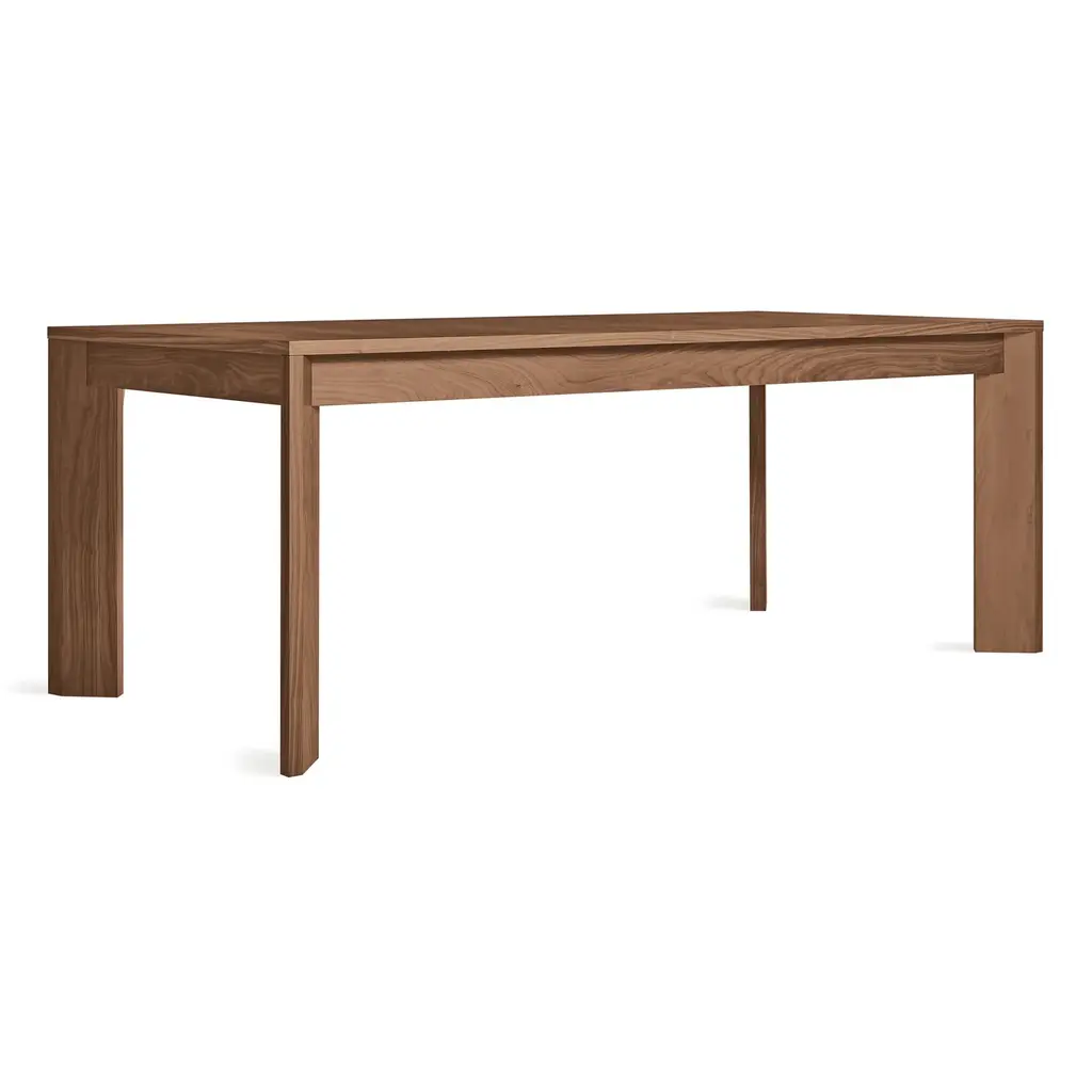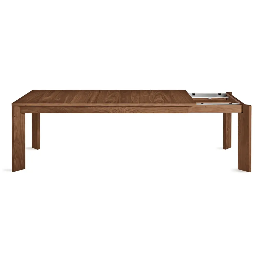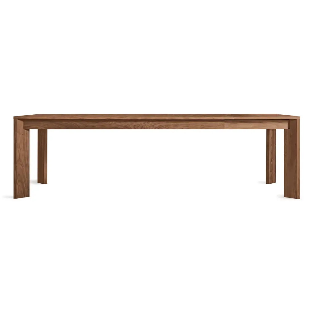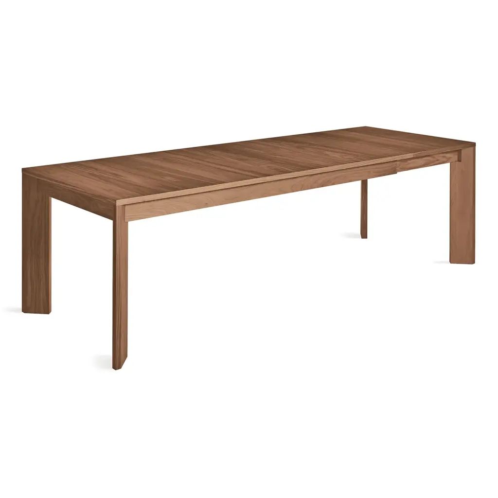 A gorgeous swath of wood pulls off the ultimate party trick. A hidden leaf butterflies out to wow your guests and eliminate the need for extra storage space. Wood grain runs the short way, acting as an alluring and sneaky disguise for the seam. Chunky angled legs keep the silhouette looking sharp and timeless.