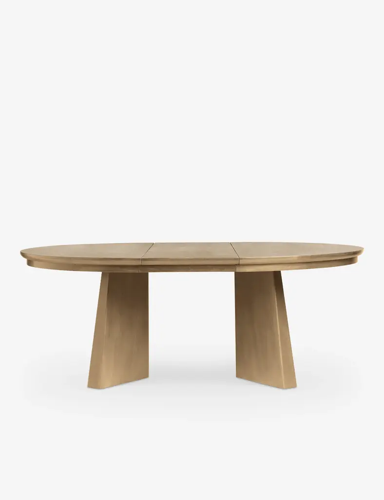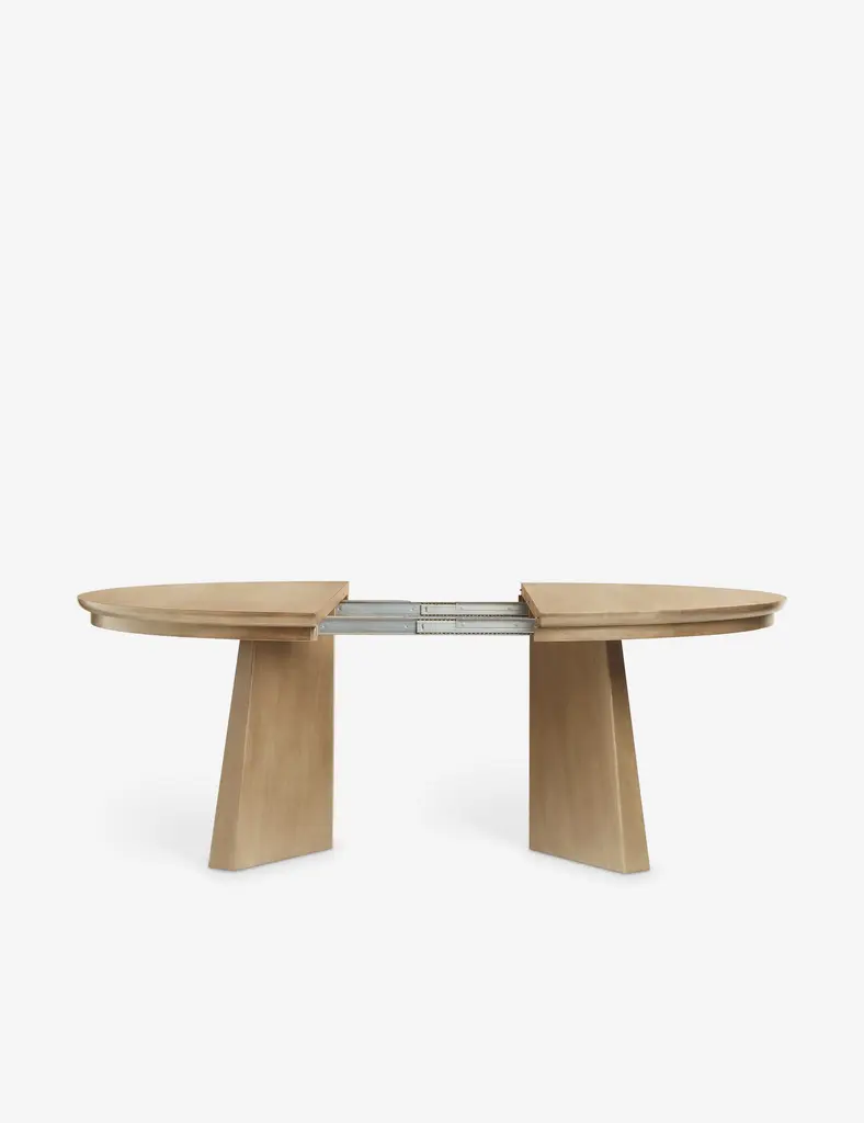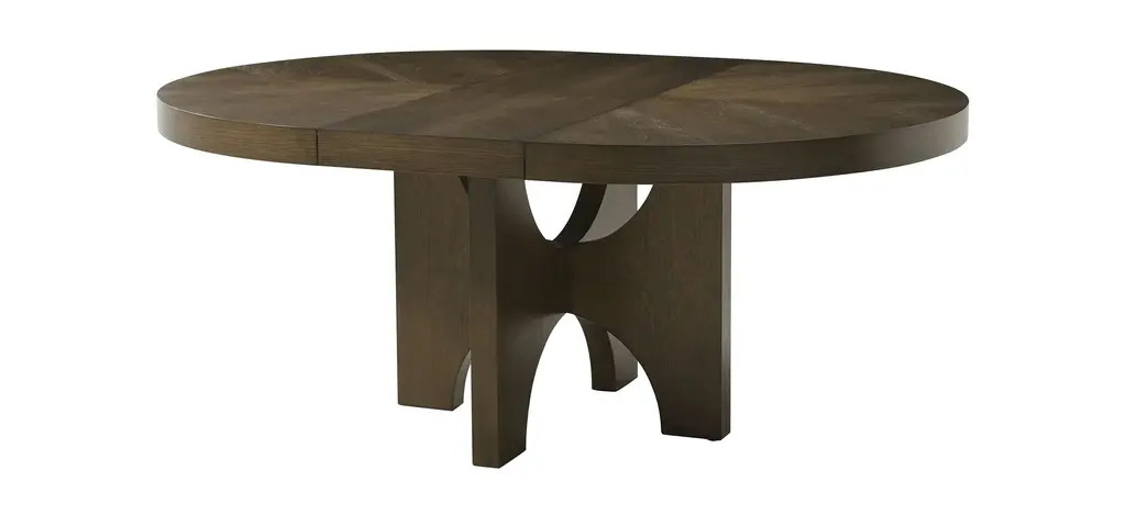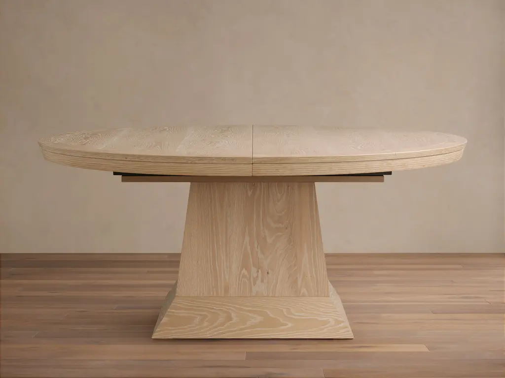 Nycola sets a bold anchor for a dynamic layout. This extendable dining table transforms from a round top for intimate everyday meals to an elegant oval fit for larger gatherings. Crafted from oak, the ingenious design transitions from a cross-pedestal base to two angular legs, creating a modern silhouette grounded in natural grain warmth.
