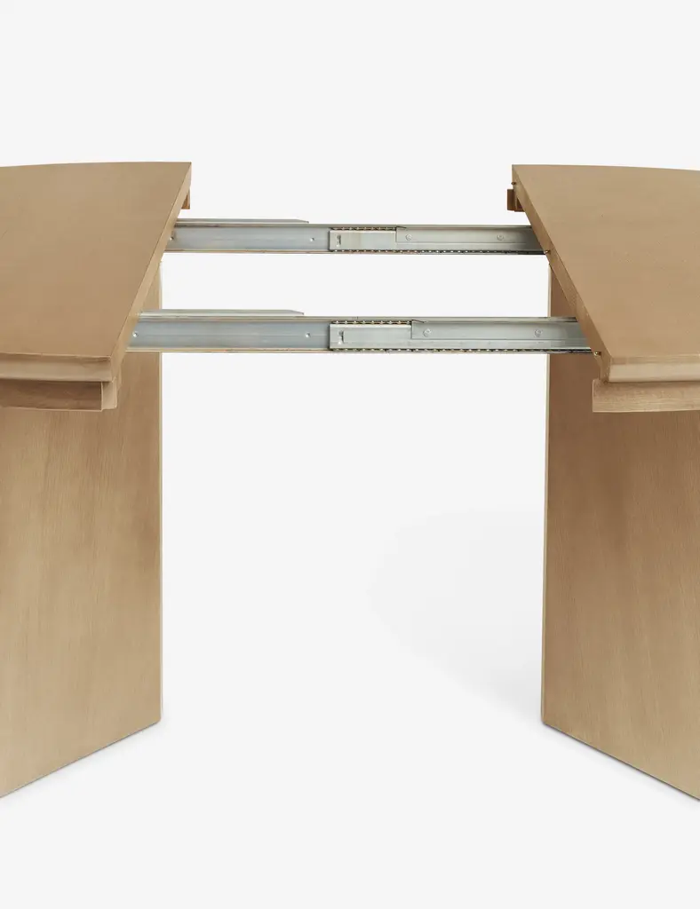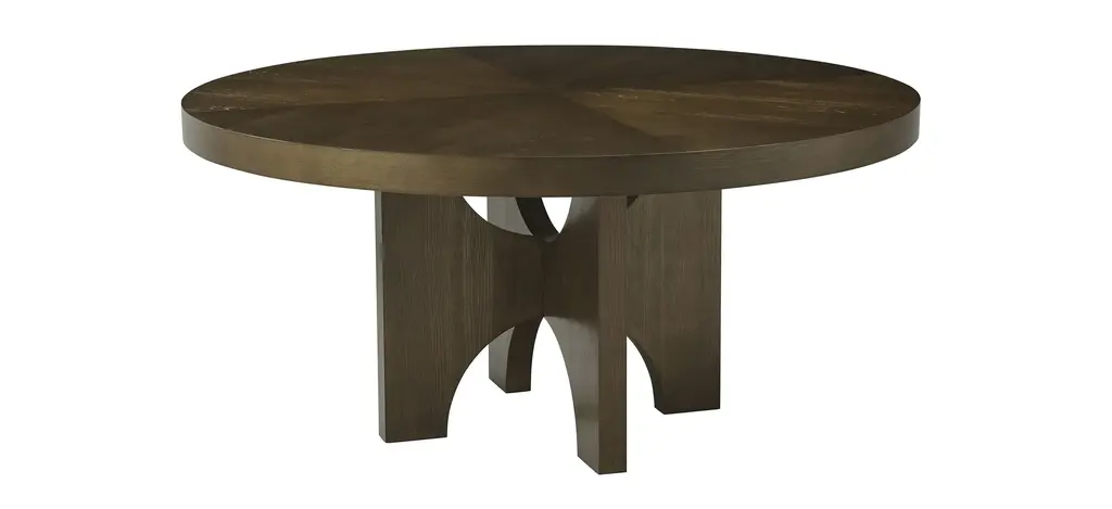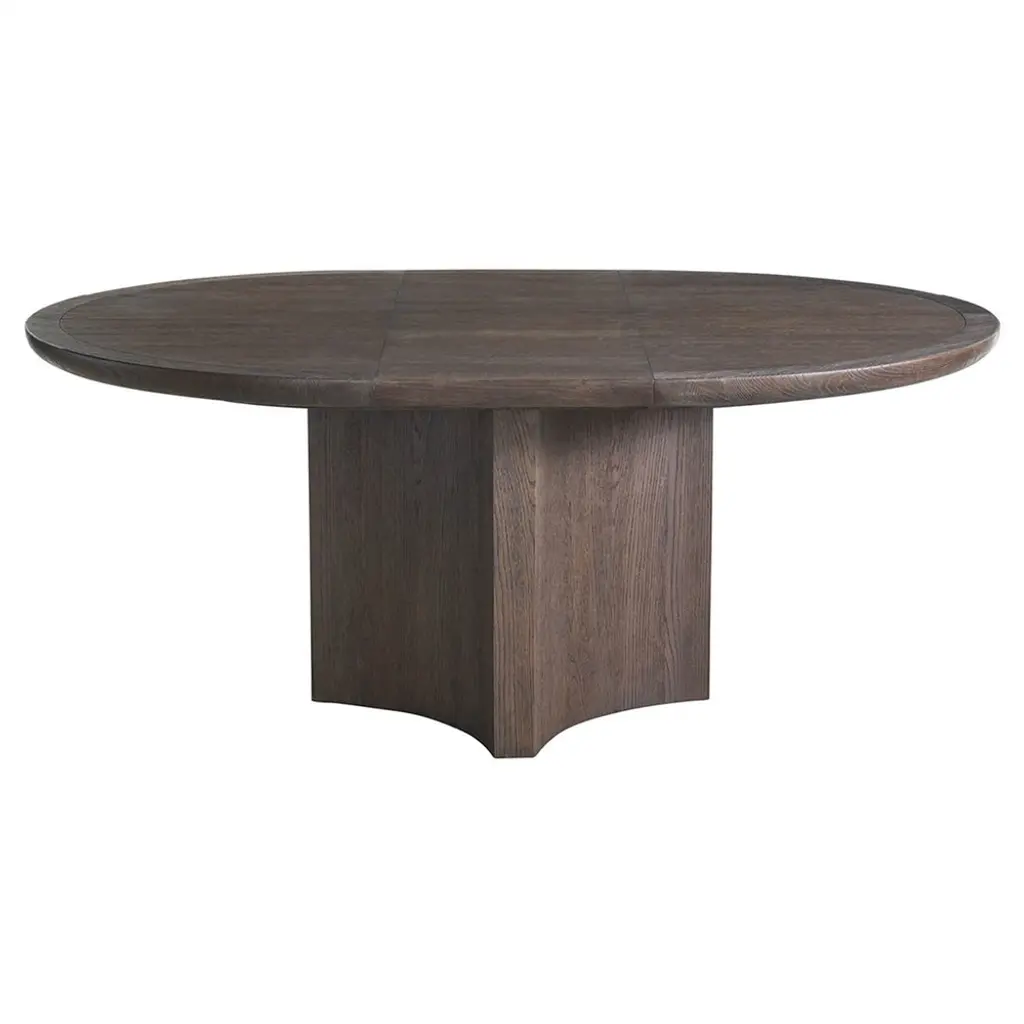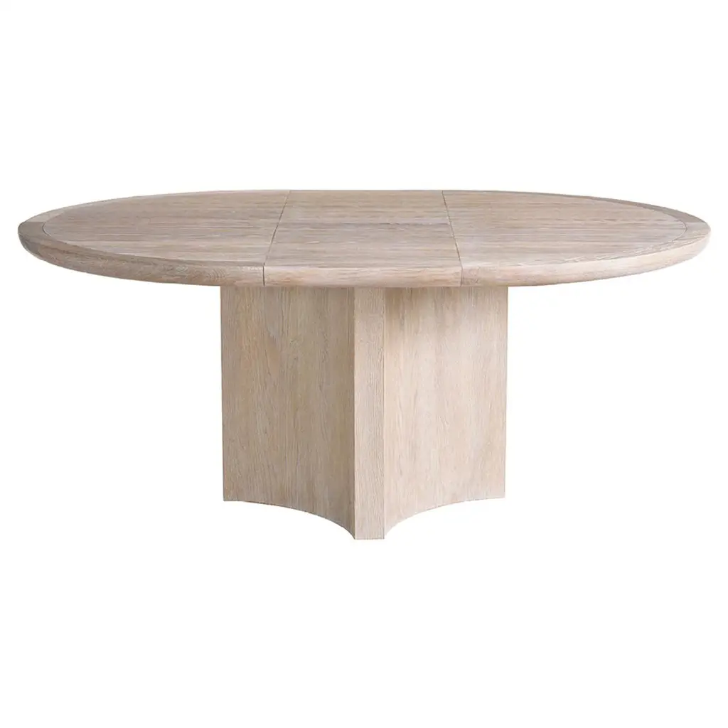 Nycola sets a bold anchor for a dynamic layout. This extendable dining table transforms from a round top for intimate everyday meals to an elegant oval fit for larger gatherings. Crafted from oak, the ingenious design transitions from a cross-pedestal base to two angular legs, creating a modern silhouette grounded in natural grain warmth.