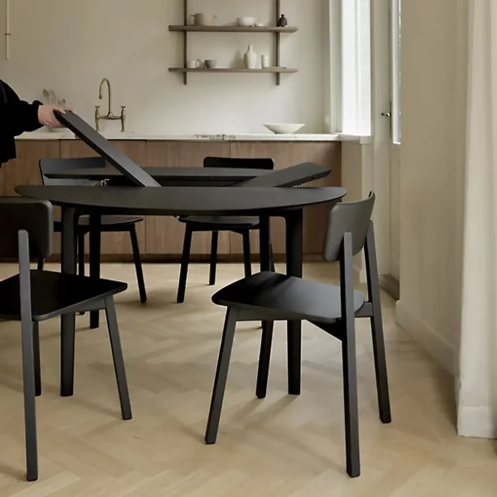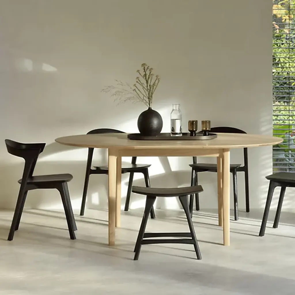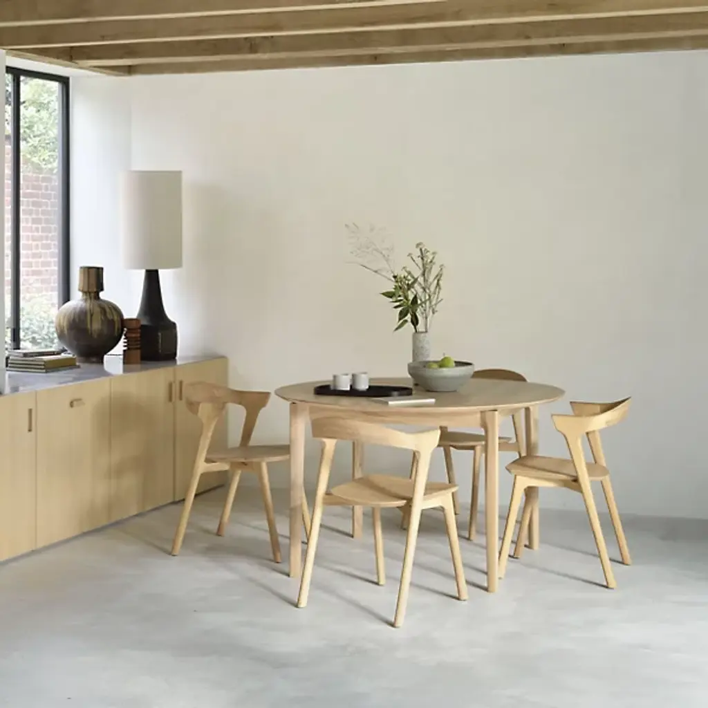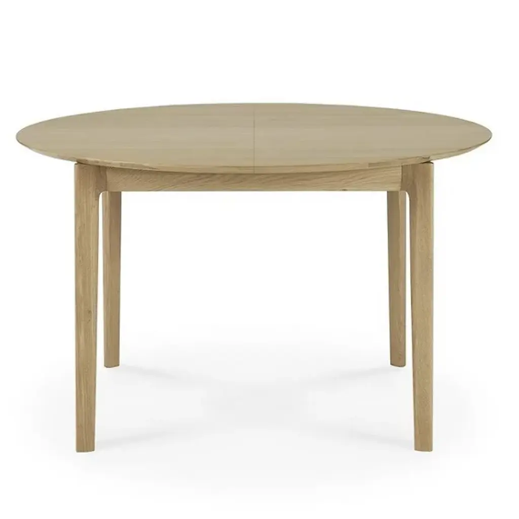 The Oak Bok Round Extendable Dining Table by Ethnicraft is an adaptable addition to spaces from designer Alain van Havre. An internally housed extension transforms this round table from providing enough room for four to enough space for some additional guests without having to spend time looking for the extra parts. Made from beautiful, solid oak, the design of this piece has an airy presence with softly shape legs that the smooth tabletop appears to be artfully balanced upon, lending a blend of form and function to spaces.