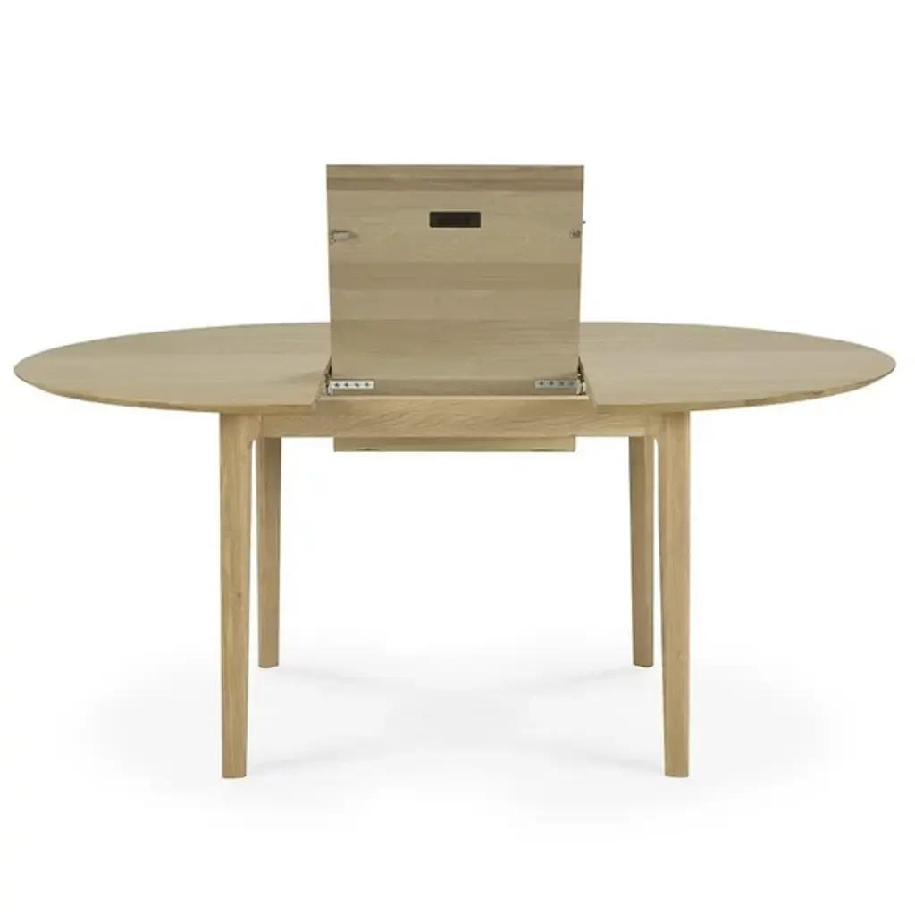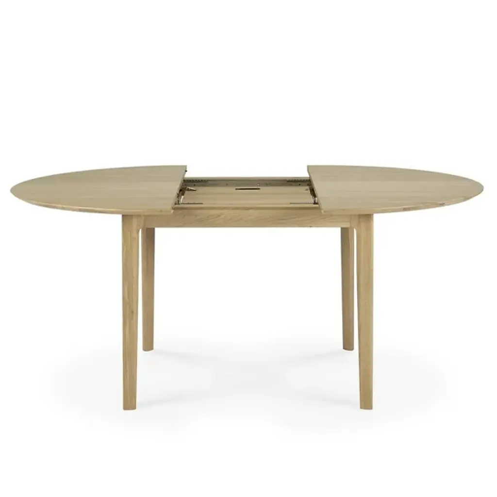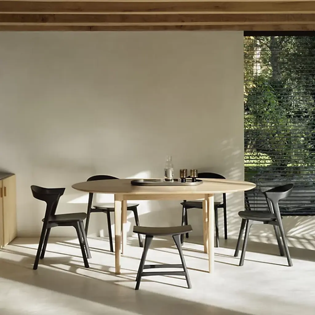 The Oak Bok Round Extendable Dining Table by Ethnicraft is an adaptable addition to spaces from designer Alain van Havre. An internally housed extension transforms this round table from providing enough room for four to enough space for some additional guests without having to spend time looking for the extra parts. Made from beautiful, solid oak, the design of this piece has an airy presence with softly shape legs that the smooth tabletop appears to be artfully balanced upon, lending a blend of form and function to spaces.