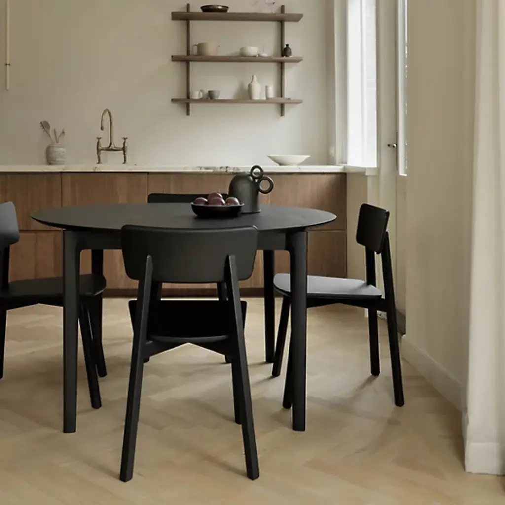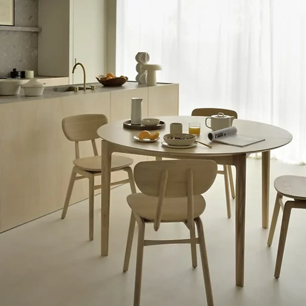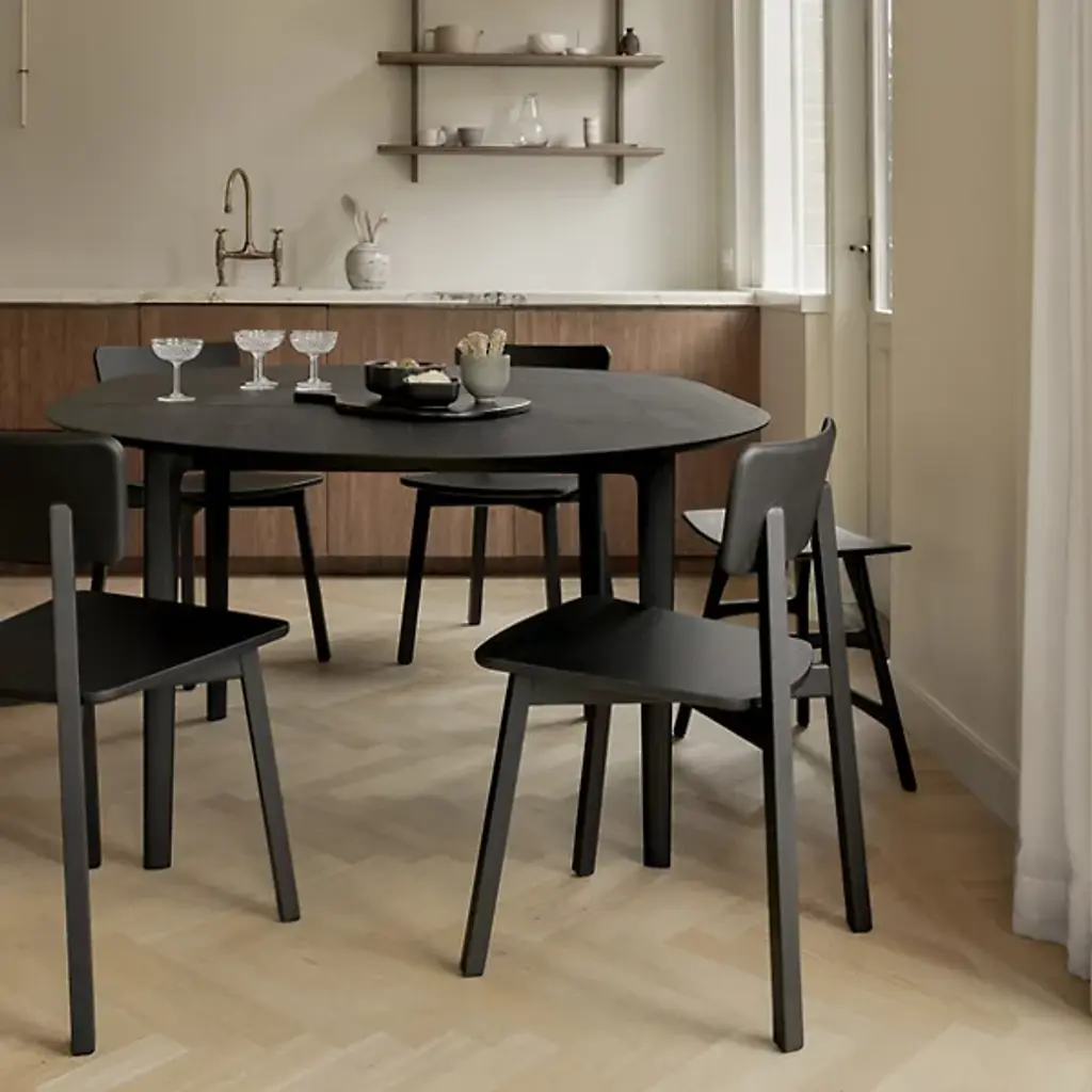 The Oak Bok Round Extendable Dining Table by Ethnicraft is an adaptable addition to spaces from designer Alain van Havre. An internally housed extension transforms this round table from providing enough room for four to enough space for some additional guests without having to spend time looking for the extra parts. Made from beautiful, solid oak, the design of this piece has an airy presence with softly shape legs that the smooth tabletop appears to be artfully balanced upon, lending a blend of form and function to spaces.