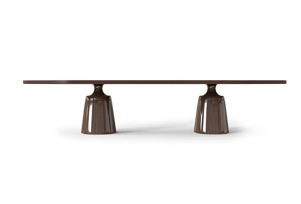 Oak Nymphea table with extension by LK EditionDimensions: 420 x 120 x H 74 cm Materials: Tinted Oak. Also available in Spruce.It is with the sense of detail and requirement, this research of the exception by the selection of noble materials and his culture of the French know-how, that LK has built up its principles and set up his skills. LK will meet your expectations and your requirements in residential, hotel, trade, yachts ... And custom-made furniture.LK, is a discrete French high-end decoration company working on projects throughout the world for well-to-do clients and prestigious brands. In September 2019, they are launching their first collection of furniture for the MAISON&OBJET exhibition. The pieces exhibited are a selection from models produced over the last ten years that reveal a quest for something exclusive and natural, signed by interior designer Pierre-Alexis Gilbert, in collusion with his wife and partner Katia Le Vaillant.