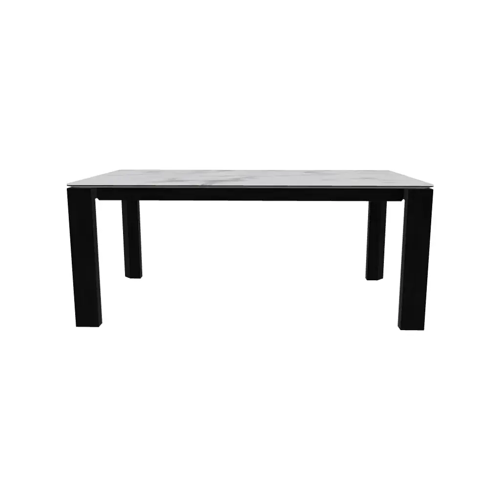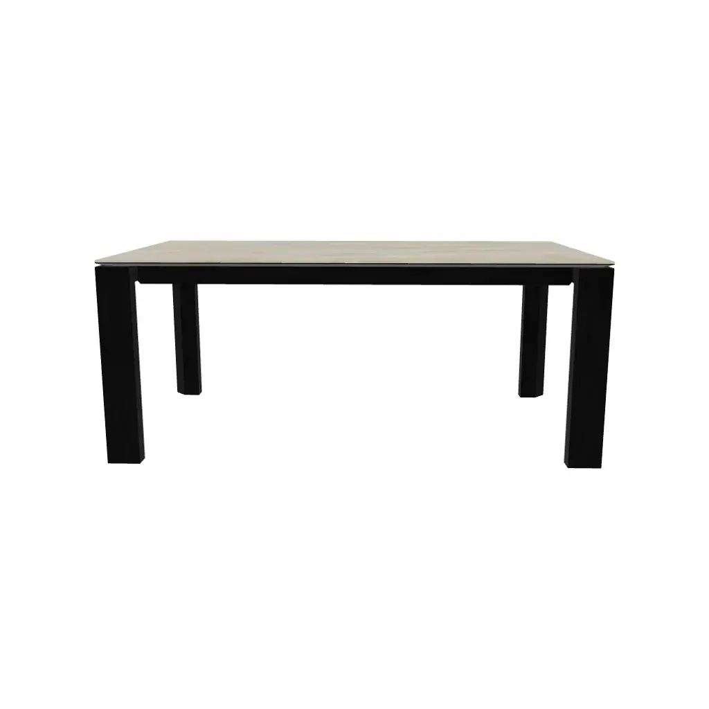 Rectangular drop-leaf table. The Omnia table contains an ingenious mechanism able to expand the top surface. Pull the frame towards you so that the two legs with hidden castors slide on one side allowing the leaf to be pulled out. With a simple rotation the leaf fitted on metal tracks comes out of its housing and lines up with the top. The perimeter legs have a slanting cut in the inside part, a distinctive detail in the aesthetics. Omnia is a drop-leaf table for furnishing the dining room. Configure it in the version you prefer. Features
