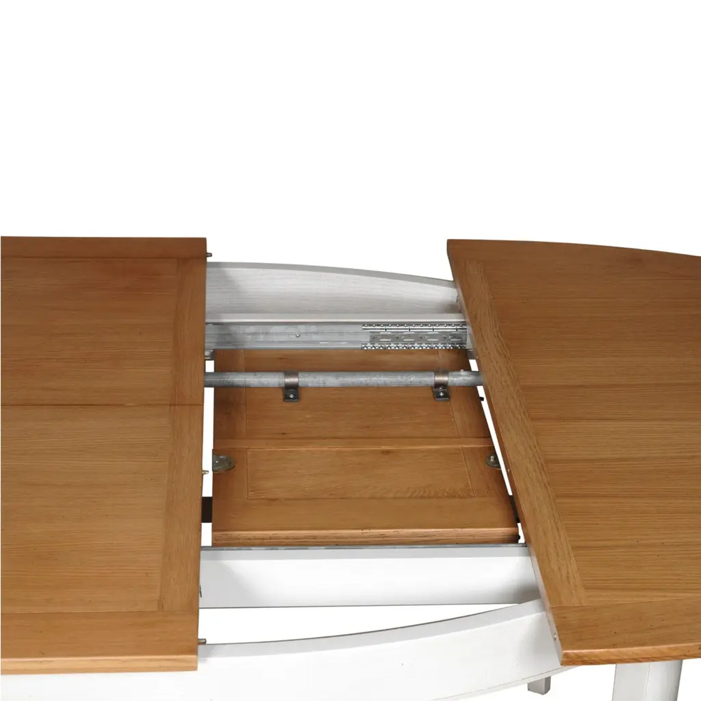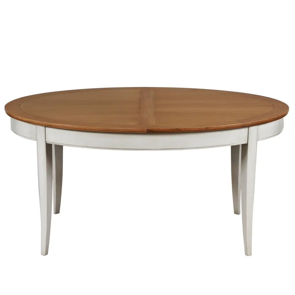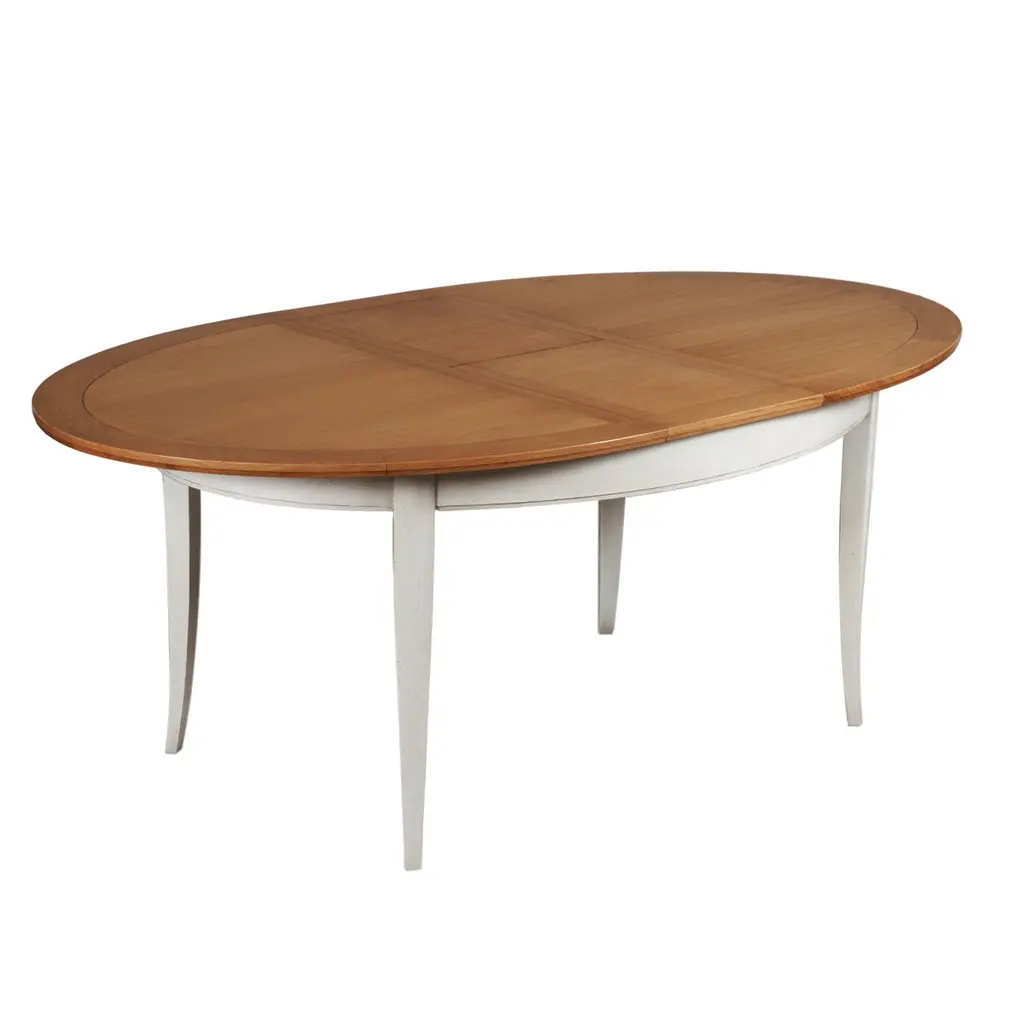This oval dining table's design is typical of the French provincial actual and classical style.This table integrates 2 extensions of 40 cm / 16" each under the top. It accomodates 6 to 10 guests with the extensions.The height under the belt is 64 cm / 25" and the length between legs is 102 cm / 40.1''GONTIER is a brand of the company MON PETIT MEUBLE FRANCAIS and provides you exclusively with 100% made in France furniture and offers a 5 year warranty.The sourcing of the solid wood comes from sustainably managed French forests.The manufacture of each furniture is made accordingly to traditional French techniques of woodworking by small craft workshops in the western countryside of France (Loire Valley and Bretagne).All pieces are fully mounted in our workshops.