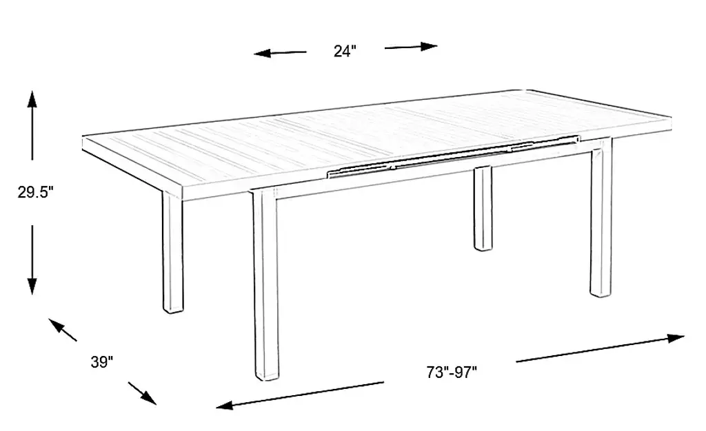 Host the perfect cookout and invite extra friends with the Park Walk dining table. The easy pop extension feature expands the table from 73" to 97" to make room for more guests. Made with a fully welded rust resistant solid aluminum frame, the table has a fresh white finish that easily coordinates with the rest of your patio decor.