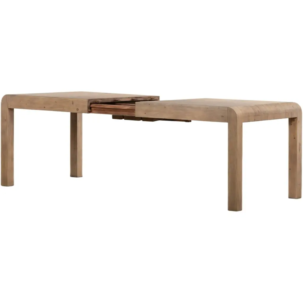 The Pierce Extension Dining Table is a masterpiece of simplicity and elegance, crafted from solid reclaimed woods. Its Parsons-style design exudes timeless charm, while the innovative butterfly leaf mechanism allows for effortless extension from 71 inches to 87 inches, accommodating your dining needs with ease. This table is not just a piece of furniture; it's a statement of style and sustainability, perfect for any dining space.