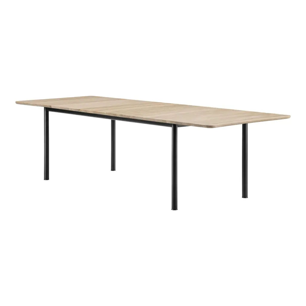 The Plan Table Extendable is designed for flexible collaboration spaces, restaurants, and private homes. While conventional extension tables are fitted with rather complicated extension mechanisms, the Plan Table extension table has aimed to simplify the tool as much as possible – with the principle that reducing complexity prolongs a product's life. The newly developed Fredericia extension mechanism runs without wires and can be easily handled by one person. It allows for two additional seats or just a convenient extra space to be added to the table. The additional table top is stored under the table while not in use.