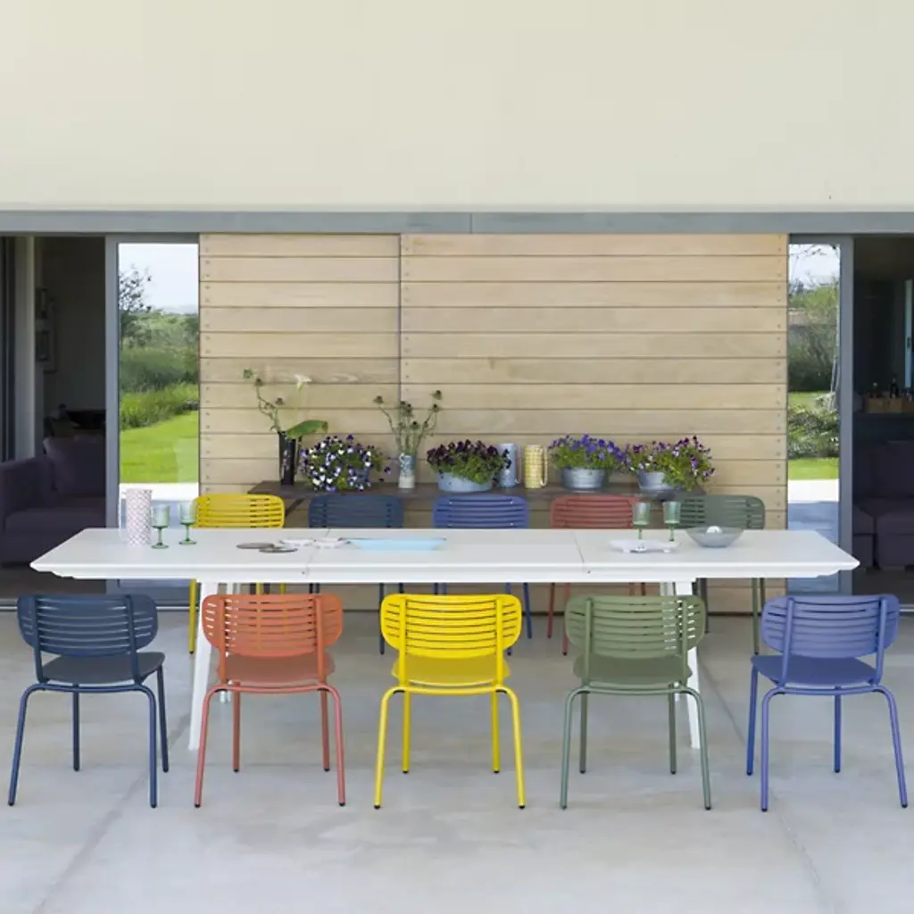Designed by Centro Ricerche for Emu, the Plus4 Outdoor Extension Table is a must-have furnishing for exterior décor spaces of choice. A beveled edge gently tiers down beneath the table’s rim, adding energy to an otherwise minimal silhouette and clean finish. Made in Italy, Plus4 was forged from steel and treated with a powder coat finish. It also features cleverly adjustable lengths, making it easy for last-minute guests to join your al fresco dinner party.