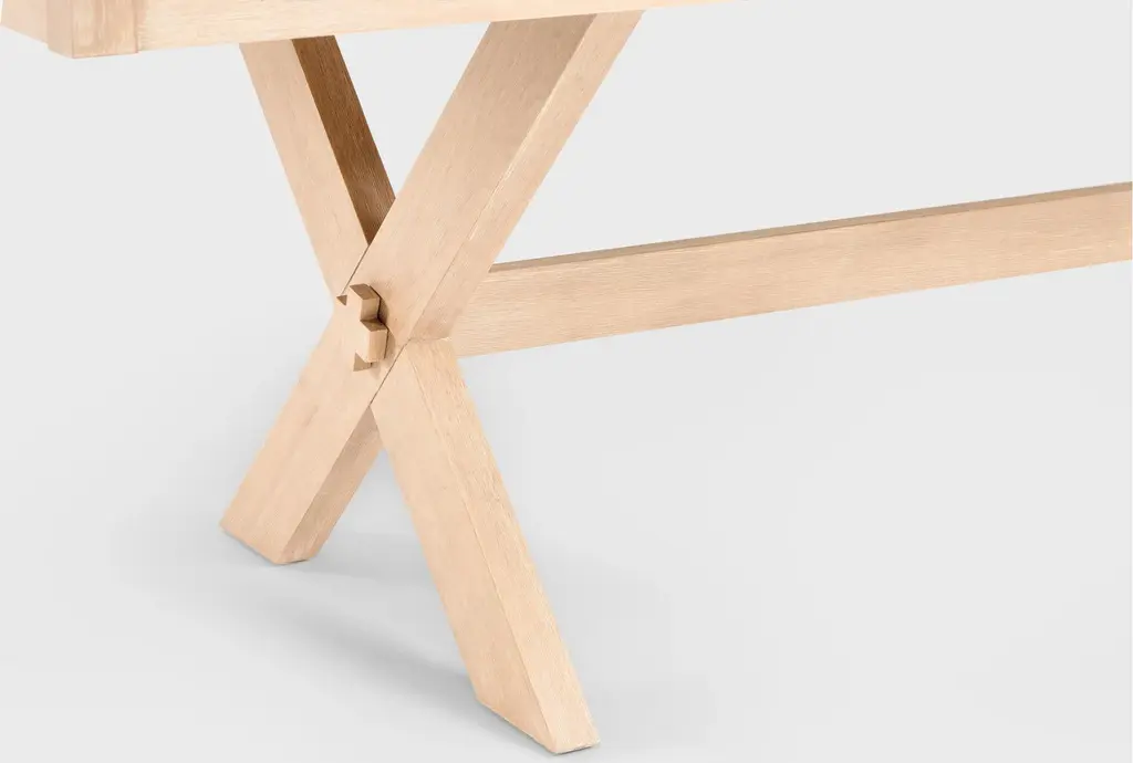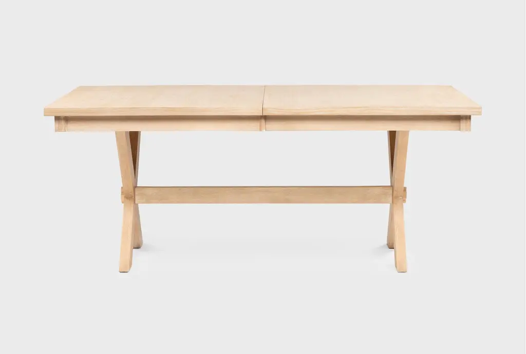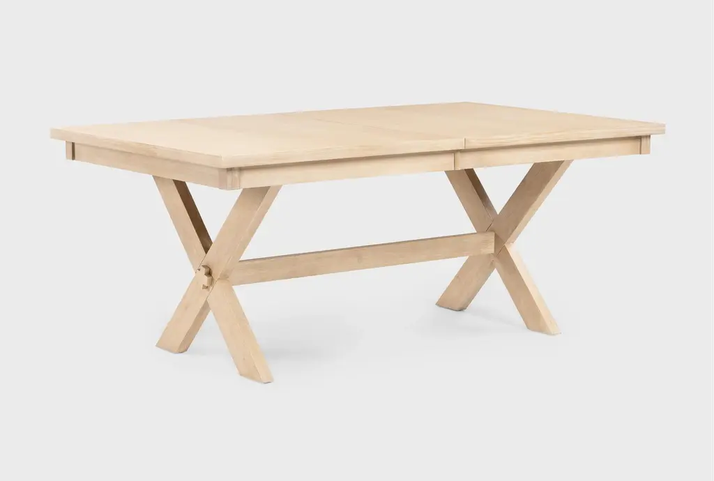 Create a gathering place in your space with our inviting Pollie extendable trestle dining table. The design welcomes you to enjoy the inherent warmth that comes with its subtle farmhouse charm. From the cross-legged detail, to the 18” extension leaf, this piece is crafted to make you feel like you belong. A combination of solid wood and pine veneer over engineered wood ensures lasting durability, quality and character.