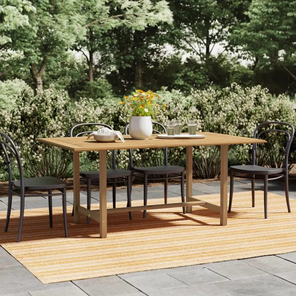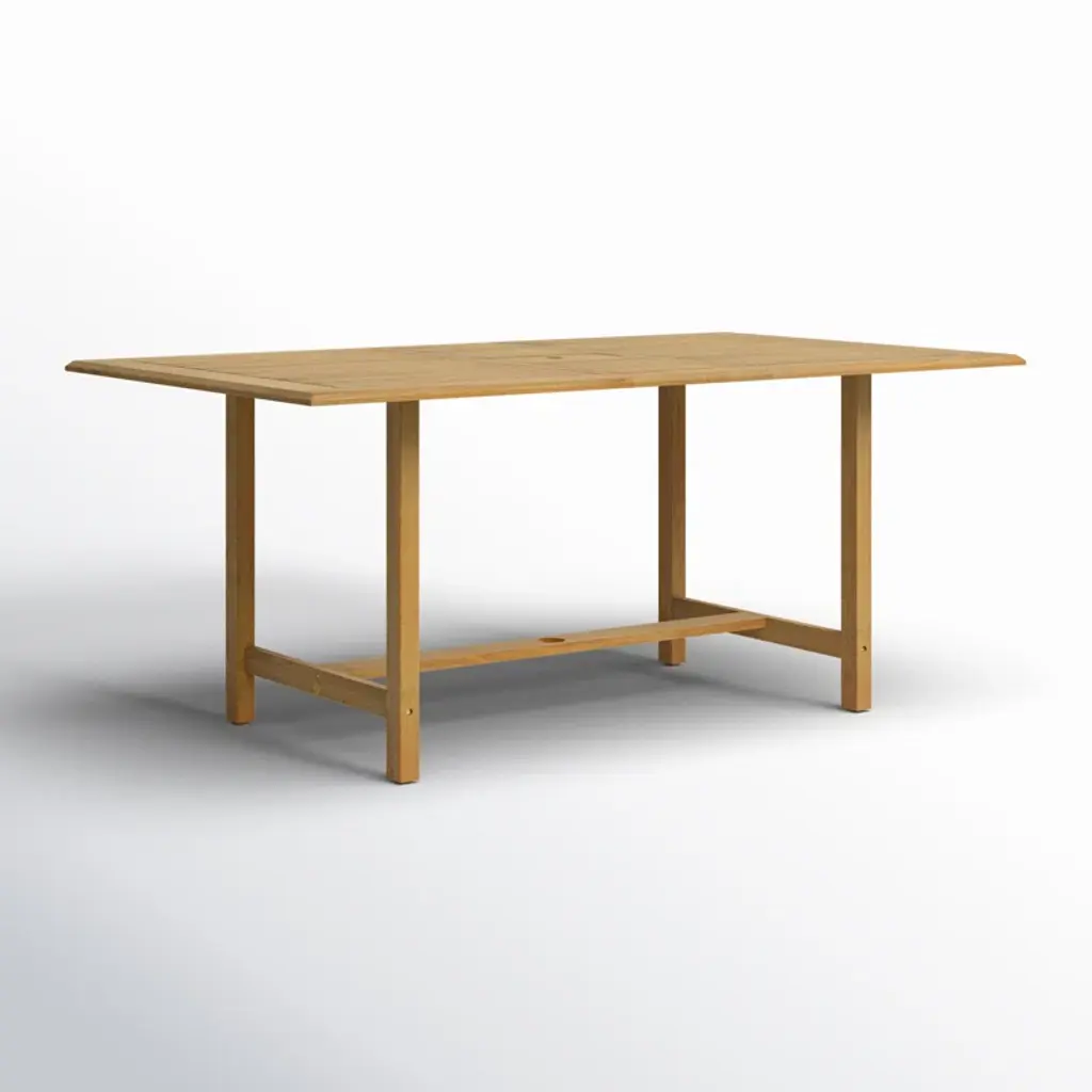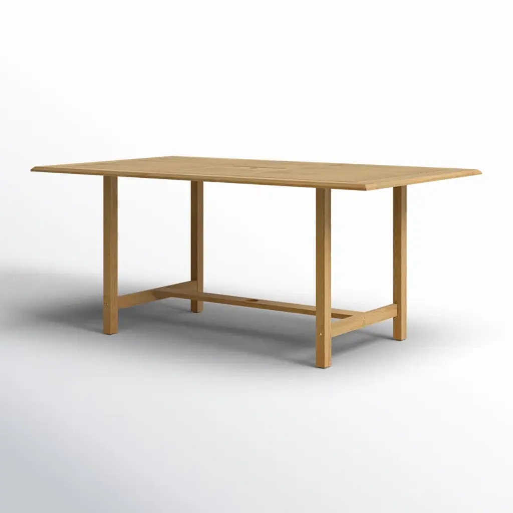 This extendable outdoor dining table makes sure you're always ready for last-minute get-togethers with friends and family. It's crafted from weather-resistant, solid teak wood with a natural wood grain that stands up to sun and rain while weathering to a coastal gray patina. This solid teak wood dining table features a slatted tabletop that extends via a butterfly leaf; plus, it has an umbrella hole that lets you dine in the shade. We recommend sealing this table with teak oil each season to maximize its outdoor performance.