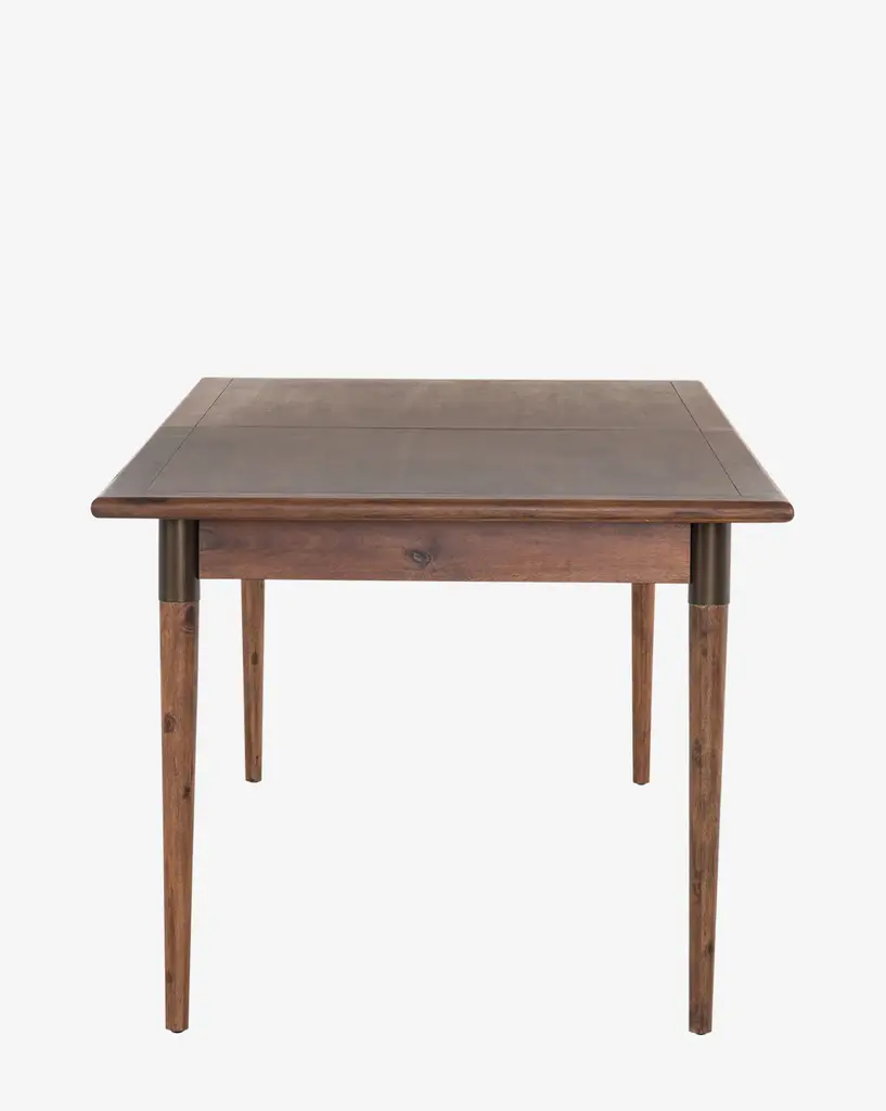 Designed with simplistic Scandinavian design in mind, the Redmond Extension Dining Table provides enough dining space for all your family members! Finished in a toasted walnut hue, its cone tapered legs lend to its modern feel while bringing warmth and dimension to your dining room.