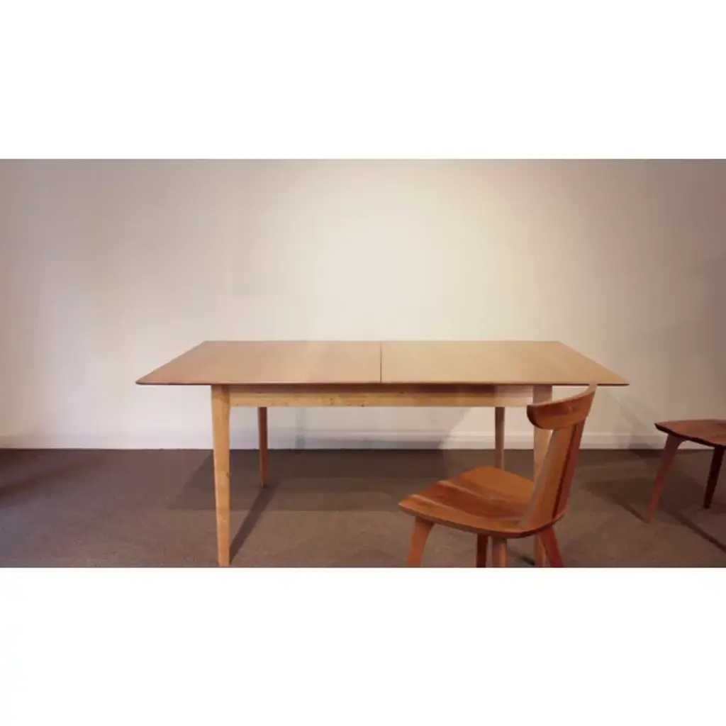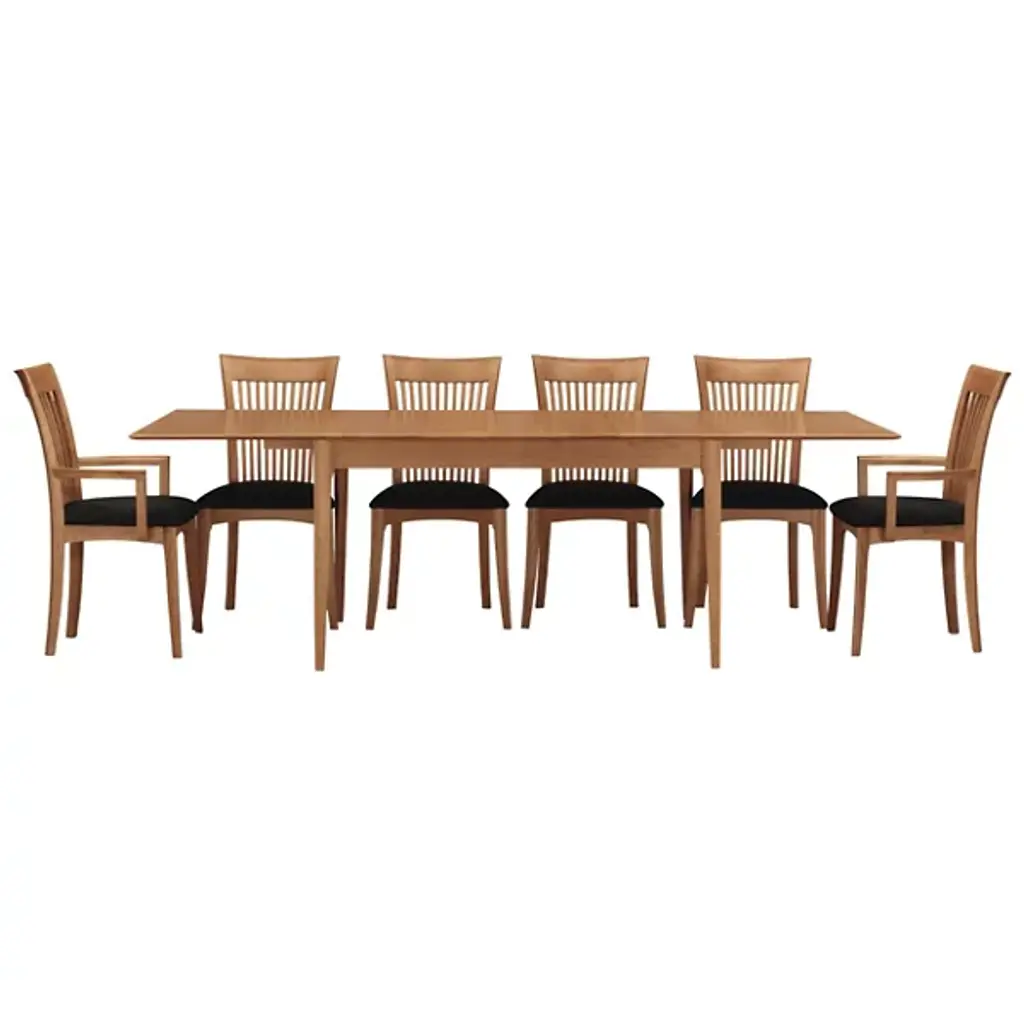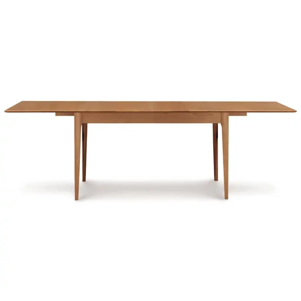 Versatile style is paired with versatile functionality in the Copeland Furniture Sarah Four Leg Extension Table. Made entirely out of high-quality solid cherry wood, this sleek, Shaker-inspired table can be extended two feet with one hand. It includes an integral butterfly leaf that moves smoothly into place at the center of the table on ball bearing extension glides.