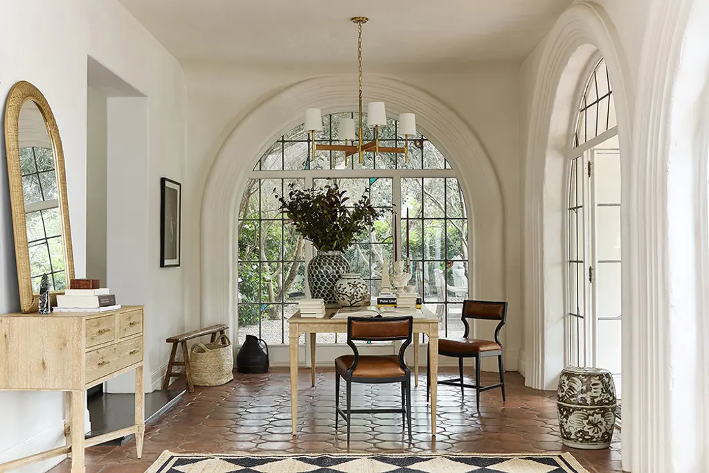 Designed by us and available only at One Kings Lane: Crafted of hardwood solids, finished with a stain, this beautiful carved dining table includes two 22" leaves that allow it to extend to accommodate up to ten guests.One Kings Lane brings you a line of handcrafted, made-to-order furnishings and decor designed by us and available only here. In keeping with our distinctive aesthetic, the pieces range from classic to contemporary and are available in a gorgeous variety of handpicked fabrics, finishes, and hardware.