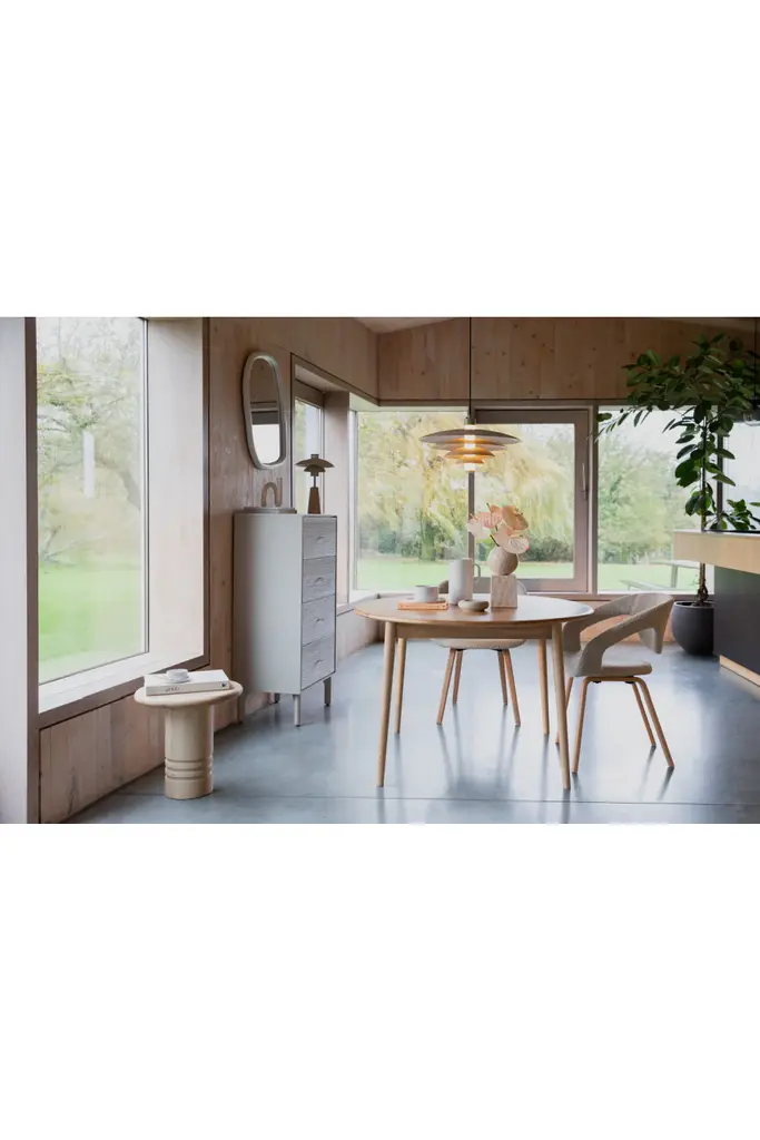 This extendable Twist table is perfect for the smaller rooms but can be transformed to a bigger table when friends and family come over. The natural wood grains on the veneer tabletop radiate warmth and bring nature into your home.