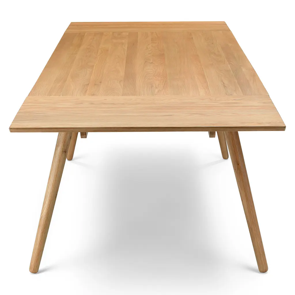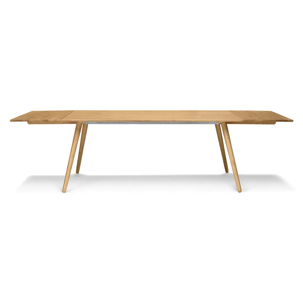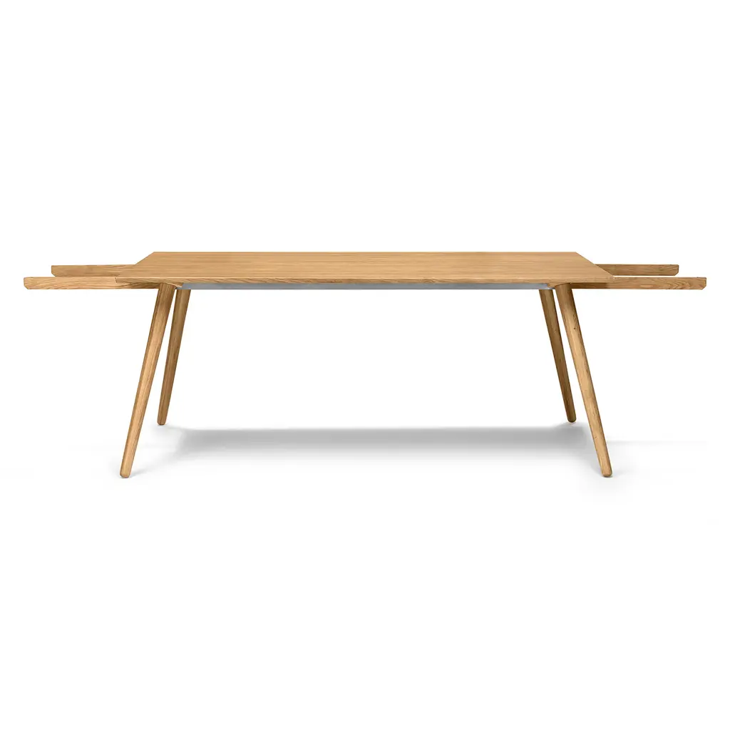Feast your eyes on this extendable oak dining table. Whether you’re cooking for six or catering for twelve, everyone sits comfortably at the Seno oak dining table. Extendable rails are cleverly tucked beneath either end, making it easy to add or remove the solid wood leaves. When not in use, store leaves in a cool, dry place such as a closet or under your bed. Host a dinner, host a wine pairing, host a party: the Seno can take whatever guests you seat at it.