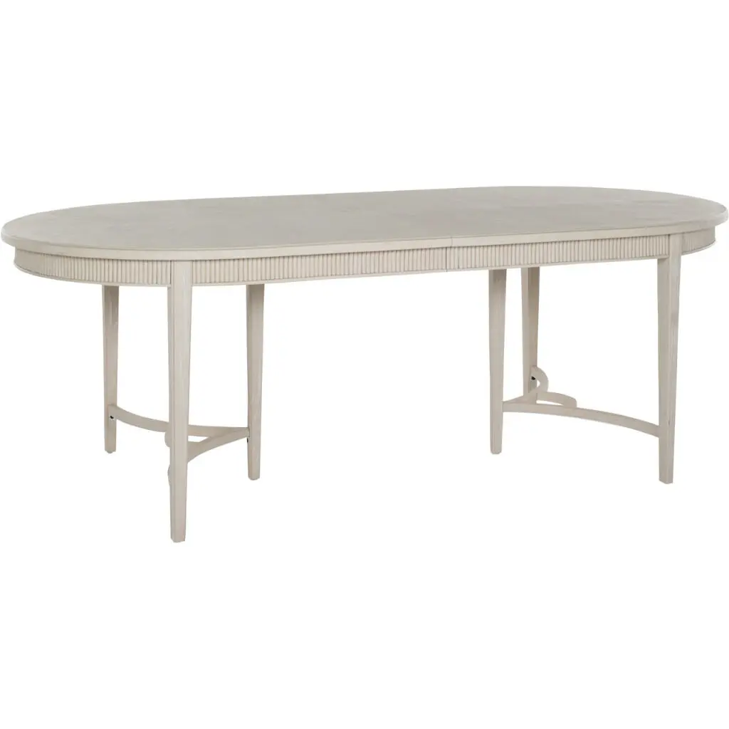 Taking a modern approach to traditional design elements, our Camille dining collection includes a dining table, credenza, and bar cabinet. Crafted from rubberwood solids and finished with a contrast highlight stripe in antique pewter. Camille features many guest and storage-friendly solutions, including a dining table extending from 77" to 121" wide.