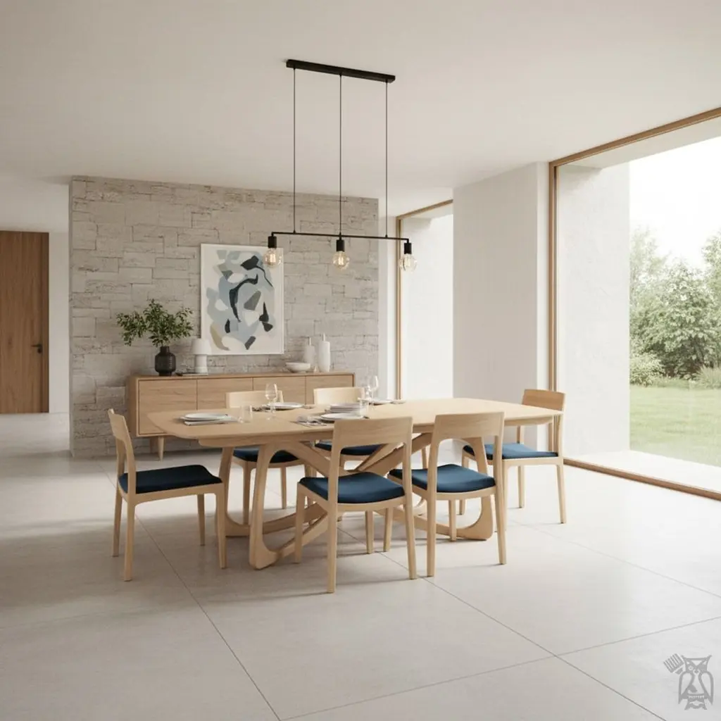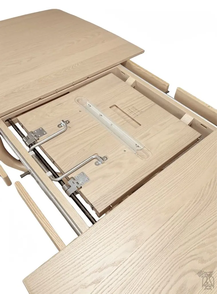 Solid White Oak Wood Butterfly 96" Long Extension Dining Table In Natural Finish
