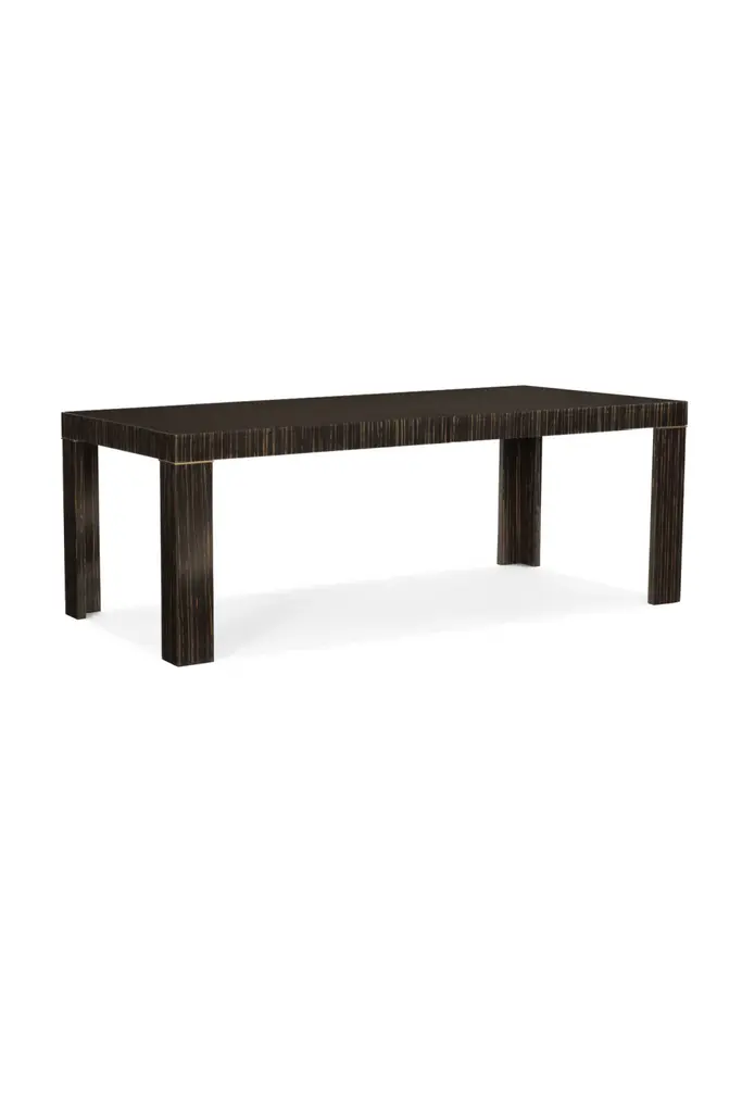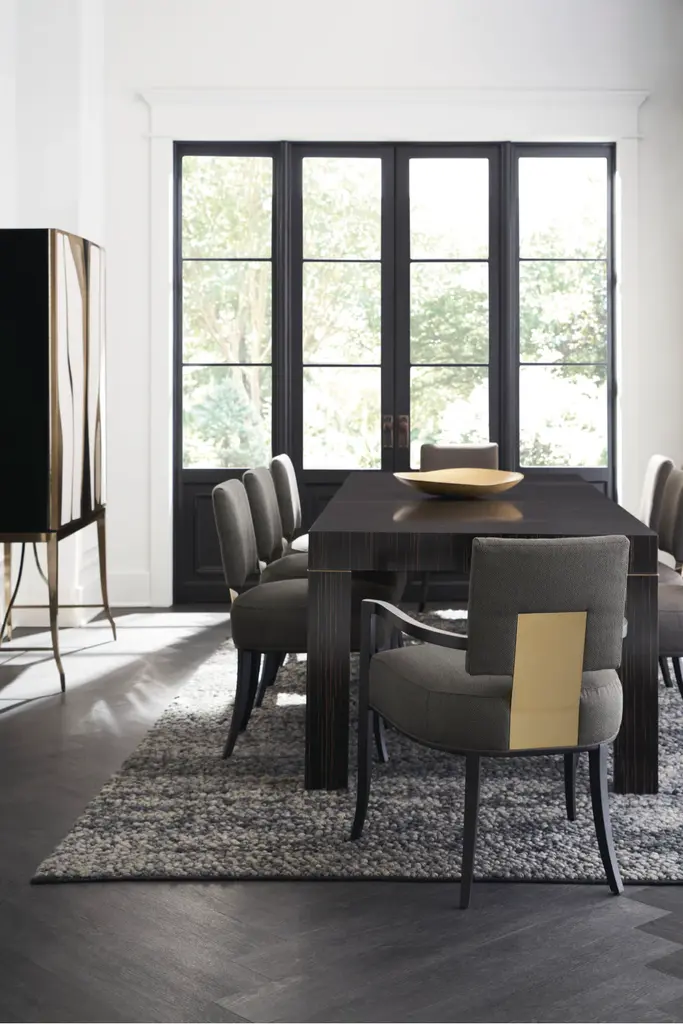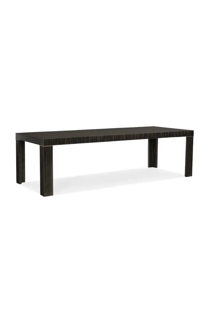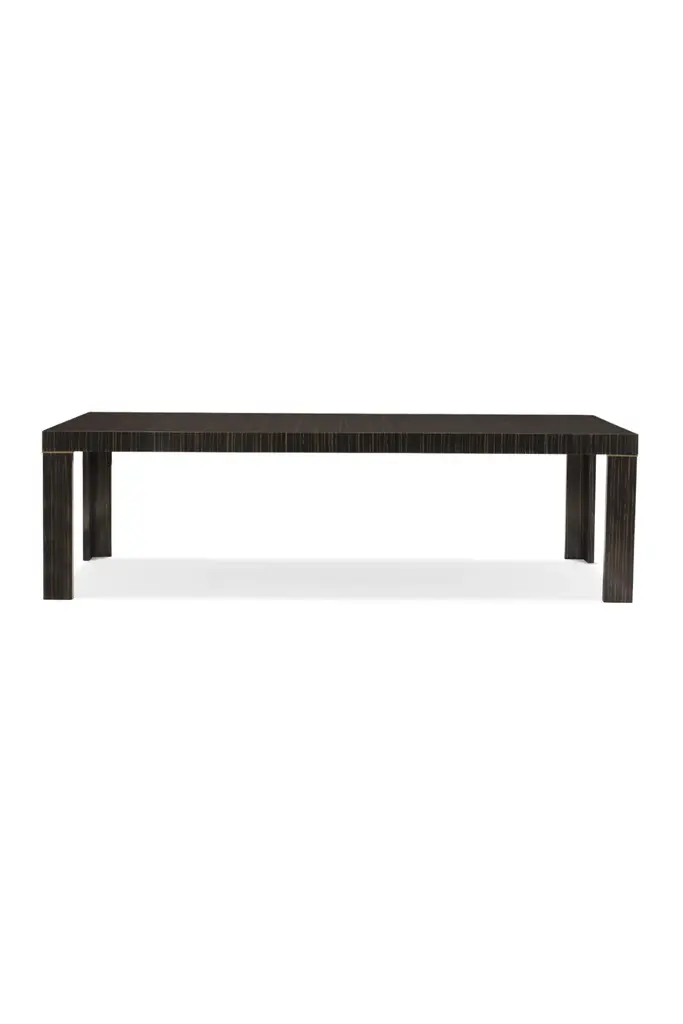 Treat yourself to an exceptional dining experience at every meal by incorporating this stunning dining table into your design plan. Its clean, simple lines reflect the timeless form of a parson table reinterpreted with a fresh mix of materials. Engineered ebony finished in Striated Ebony with Lucent Bronze Metallic paint trim adds bold character to the table top and legs without taking away from its streamlined form. The epitome of everyday elegance, this dining table’s generous 80-inch width is designed for entertaining and can be extended to 102 inches with the addition of its 22-inch leaf—making holidays more fun and ensuring everyone always has a place at the table.