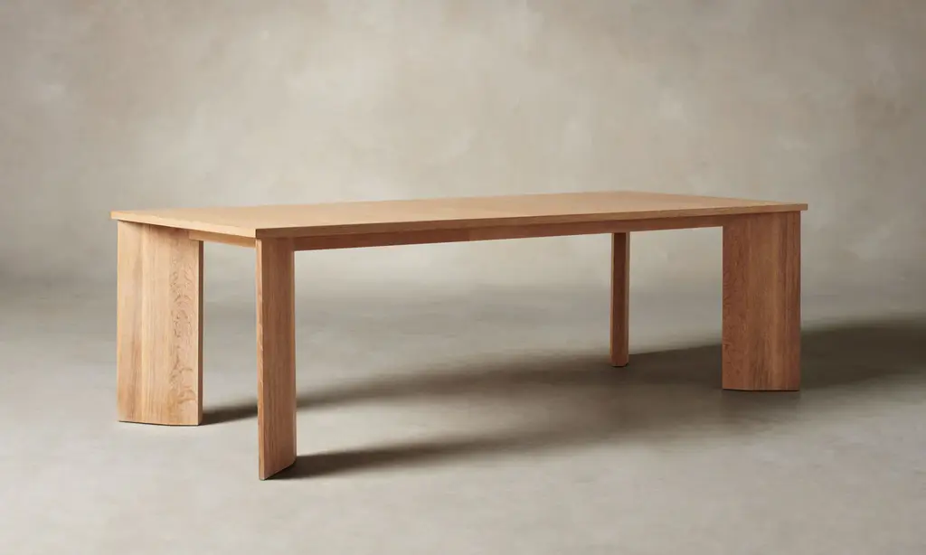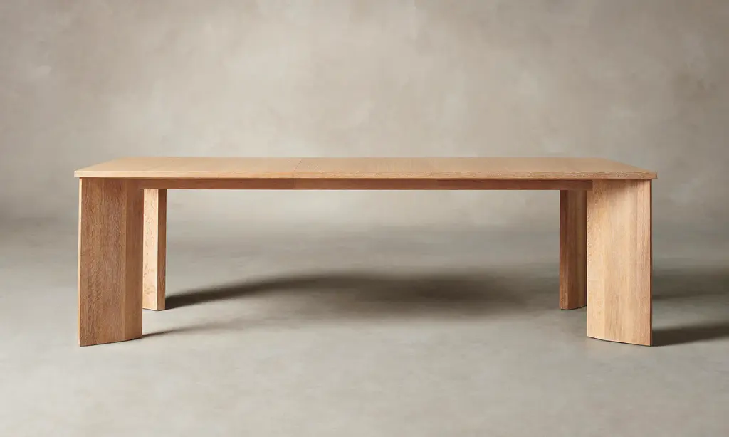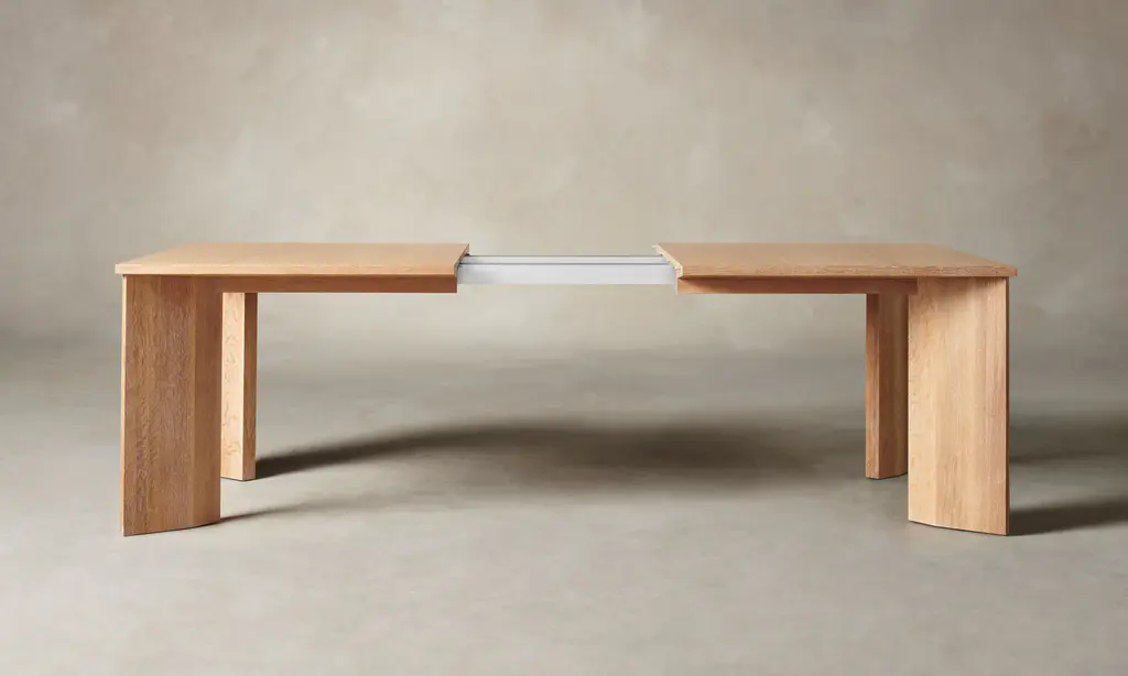 The York Extendable Table makes a profound impact in the dining room. Its sleek tabletop and striking legs—each beveled and positioned at an angle—attract the eye, making it an alluring piece to gather around. With an additional leaf, it can seat up to 10 guests. Handcrafted at a family-owned workroom in upstate New York.