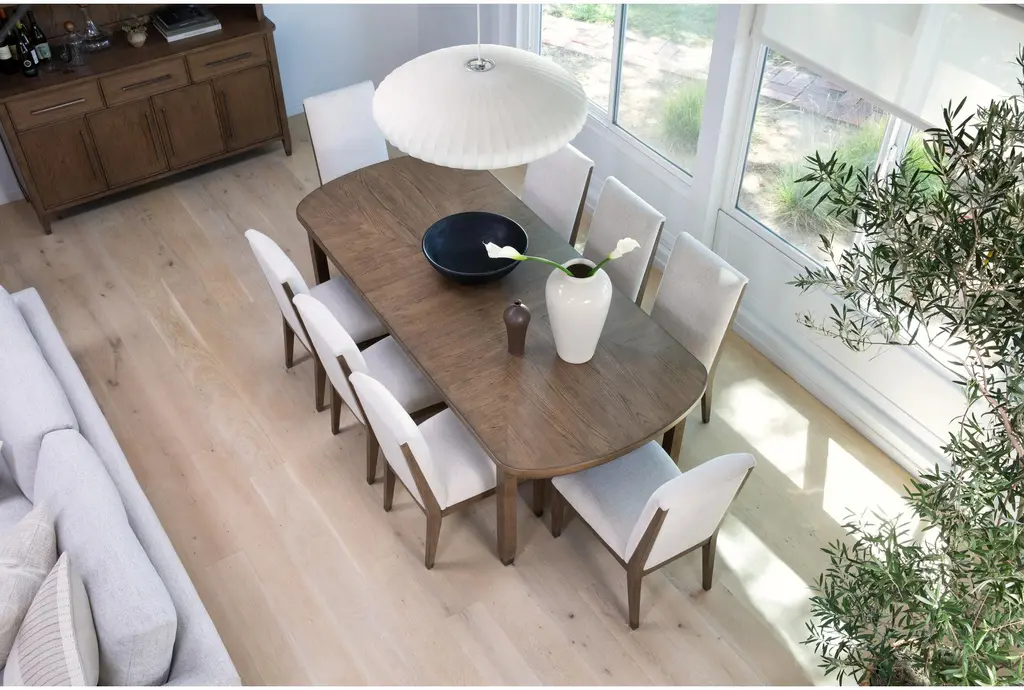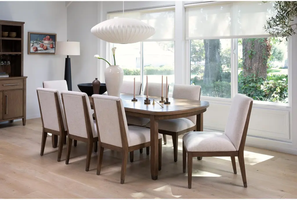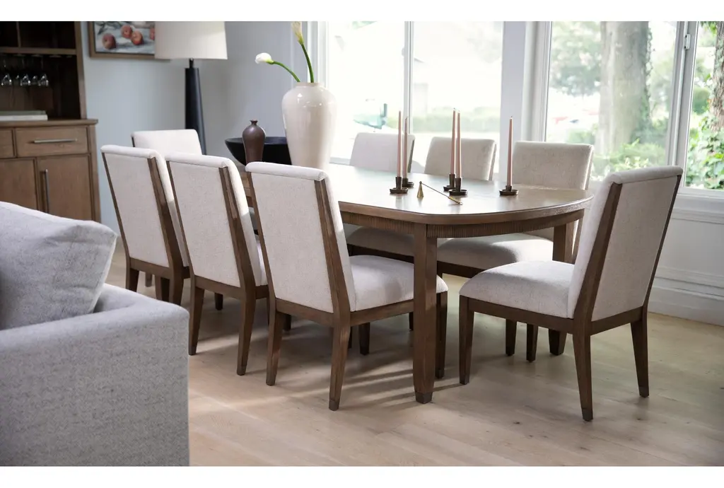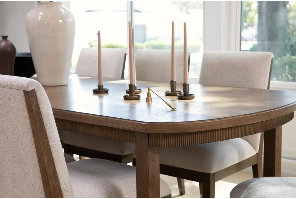 Thea Brown Wood Extendable Reeded Trim 78-96" Oval Dining Table | Asian Hardwood