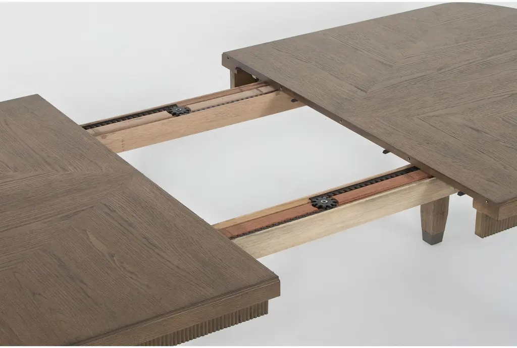 The Thea Brown Wood Extendable Reeded Trim 78-96" Oval Dining Table is a versatile piece perfect for any dining room or kitchen. Crafted from Asian hardwood, this large table features a beautiful brown finish and a traditional style that complements any decor. The oval shape and reeded trim add a touch of sophistication, while the extending feature ensures ample space for gatherings.