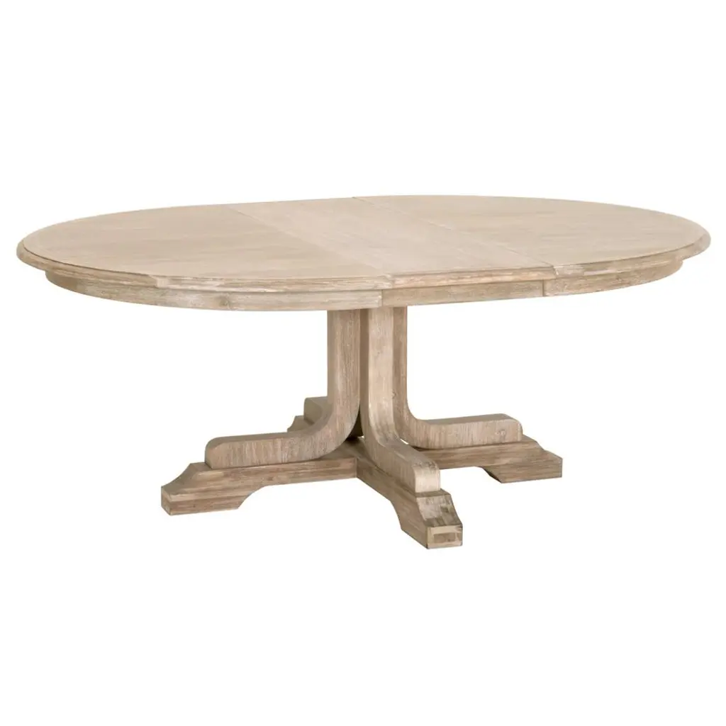 Troy Modern Solid Acacia Pedestal Base Round Extendable Dining Table - 60-77.5"w