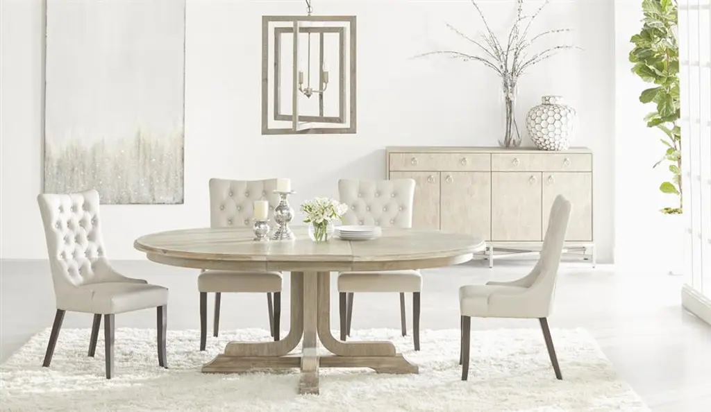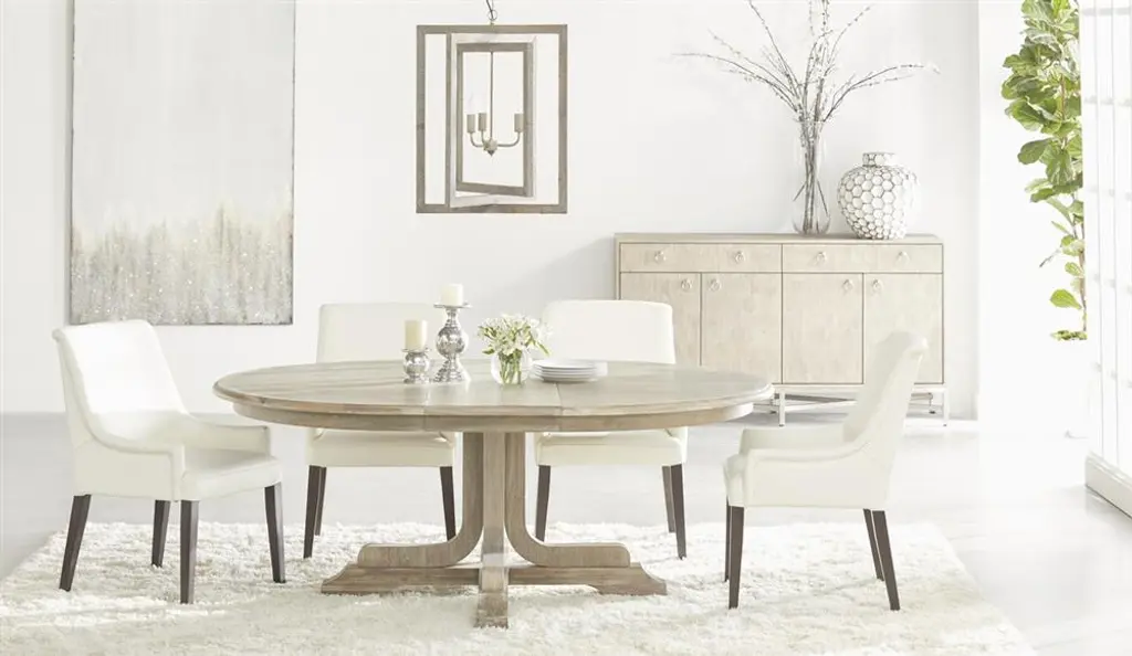 The subtle details and solid acacia wood construction will add a striking visual statement to any dining space. The Troy Modern Solid Acacia Pedestal Base Round Extendable Dining Table is designed with function and versatility in mind.