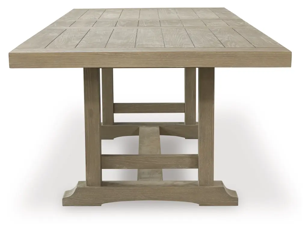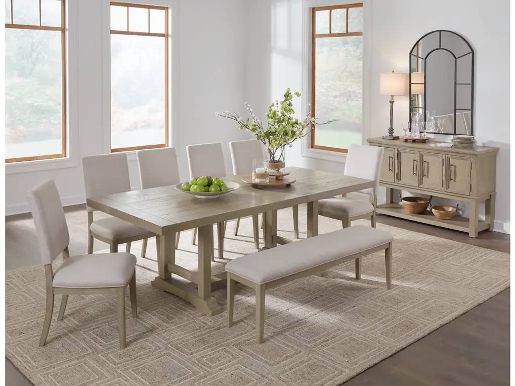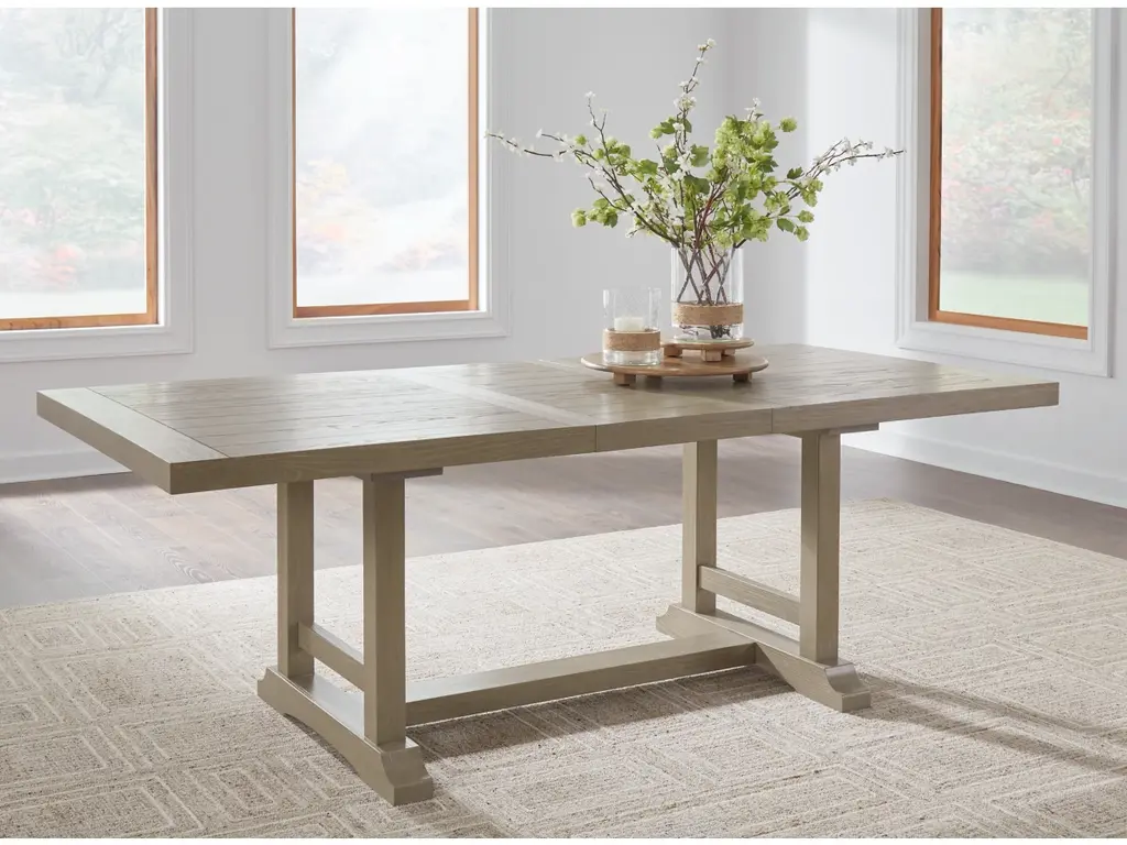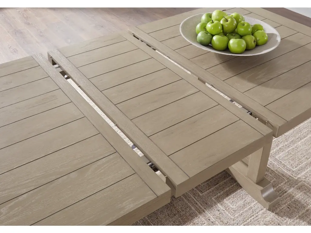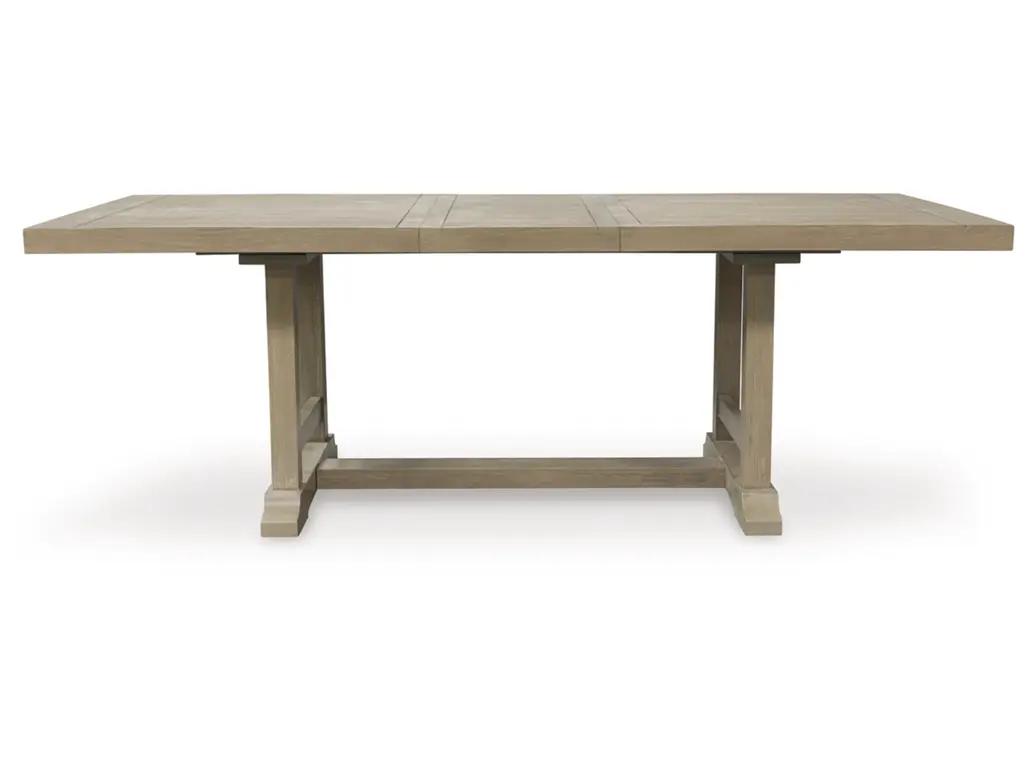 Indulge in relaxed refinement with the Vallardia extension dining table. A casual silhouette and light grayish brown finish exemplify its updated take on traditional styling. And the trestle table’s removable leaf makes room for one and all. Now there’s a show of great taste.