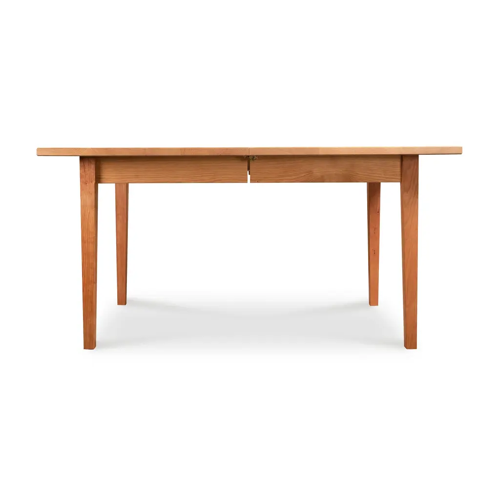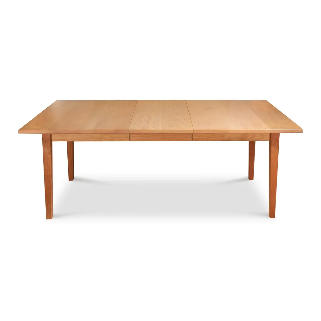 This solid wood Vermont Shaker Dining Table is handcrafted in Vermont with sustainably harvested wood (cherry, walnut or maple).Base price represents 36"W x 48"L x 30"H rectangular extension table in natural cherry with one 18" extension leaf, chamfered edge, 4-sided taper legs and straight apronShown in 42"W x 60"L x 30"H rectangular extension table in natural cherry with one 18" extension leaf, chamfered edge, 4-sided taper legs and straight apronMatching furniture available in our Vermont Shaker Furniture Collection