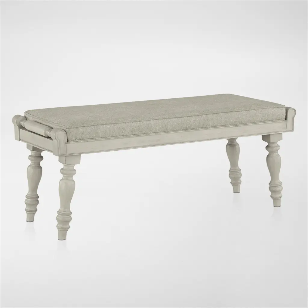 The Vineyard Rectangular Dining Table, 4 Dining Chairs and Bench channel a cozy farmhouse appeal with gentle curves, lots of style and endless functionality.
