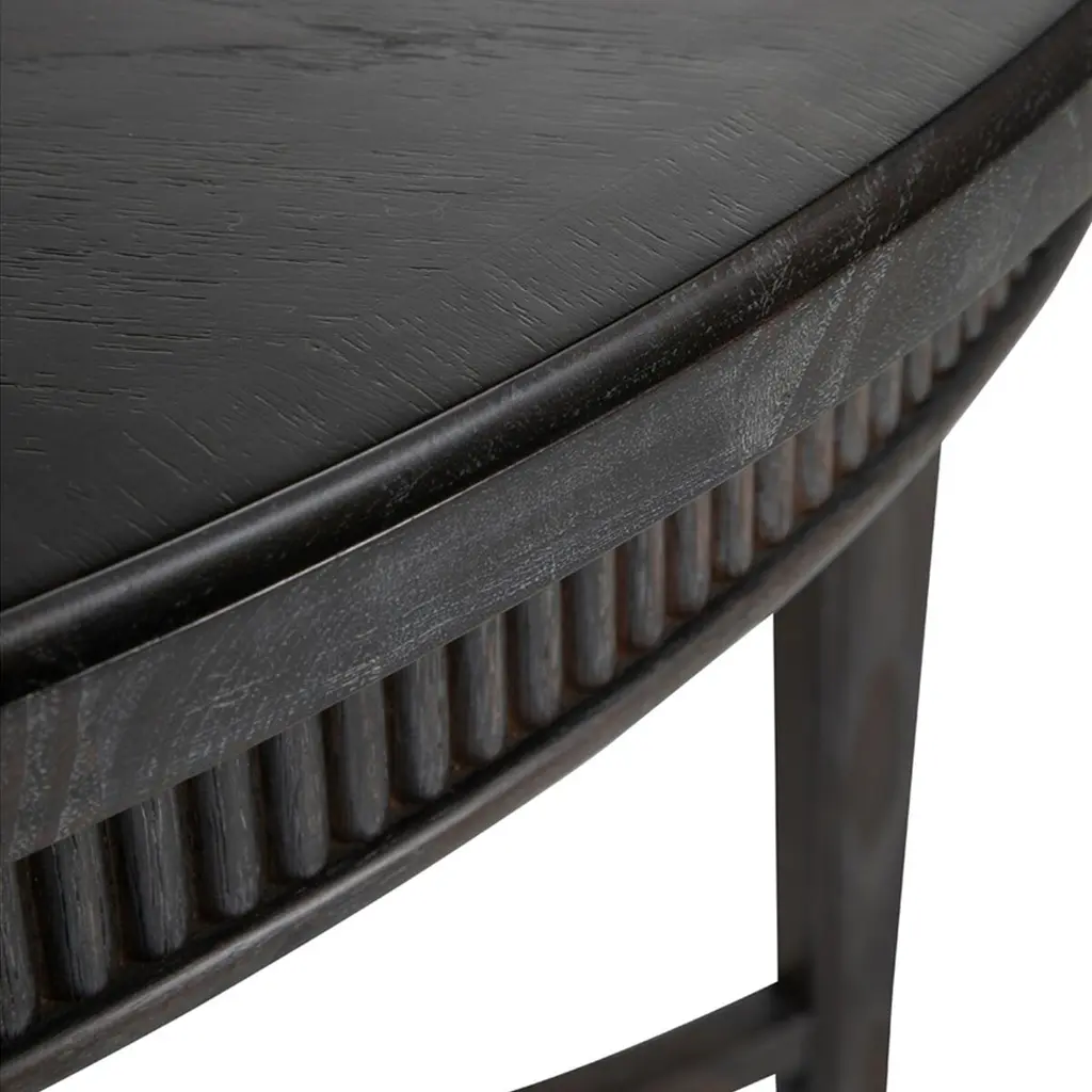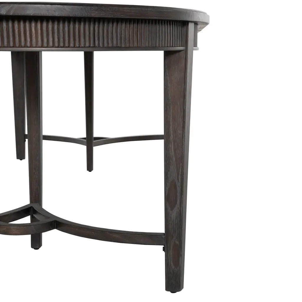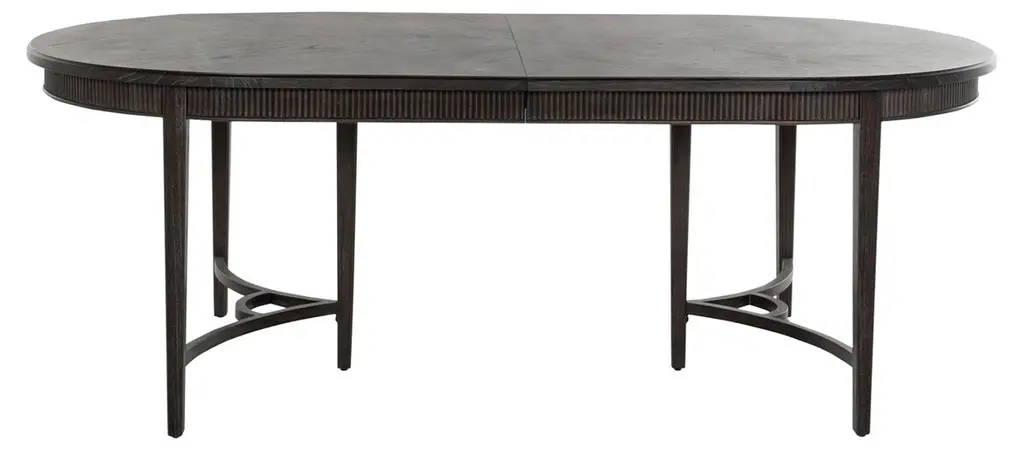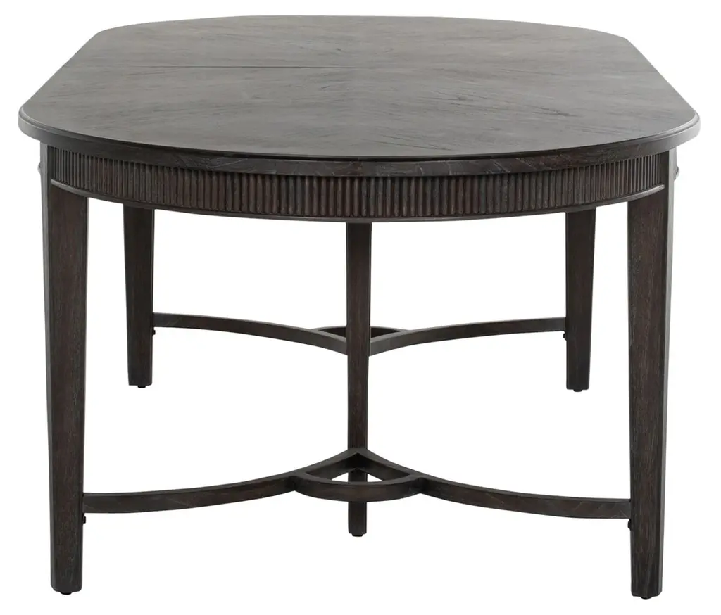 The Whitlock Dining Table exudes timeless elegance with its cerused finish and classic design. This table features an oval shape and includes a 20-inch leaf that extends to accommodate additional guests. Crafted from durable mindy wood, this dining table features a refined oval shape and intricately detailed edges, adding a touch of sophistication to any dining space. The sturdy construction ensures lasting quality, making it an ideal centerpiece for family gatherings and entertaining guests. The Whitlock Dining Table seamlessly blends traditional charm with contemporary style, creating a versatile piece that enhances any decor. This product uses natural or handmade materials, so variations in color and pattern are to be expected and celebrated.