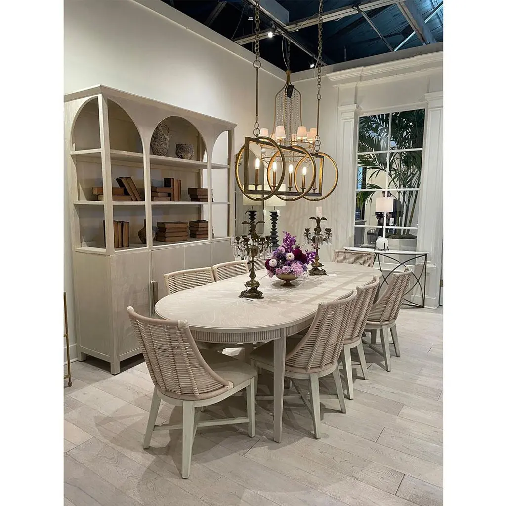 Whitlock White Wood Patterned Extendable Oval Dining Table - 86-106"w