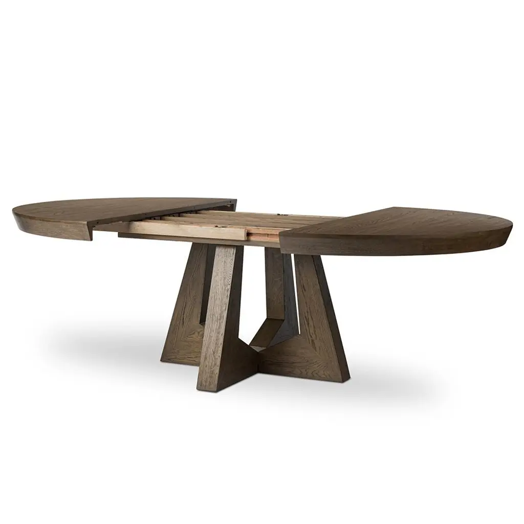 Zylvia Rustic Dark Brown Solid Oak Wood Extendable Round Dining Table - 60-94.02"w