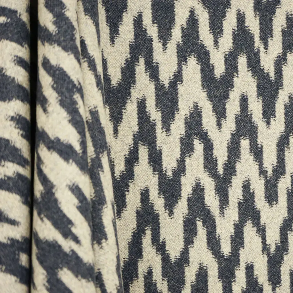 A perfect contemporary decor option with this wool chevron design fabric. In color hues of light blue and navy blue. From JF Studio by JF Fabrics.
