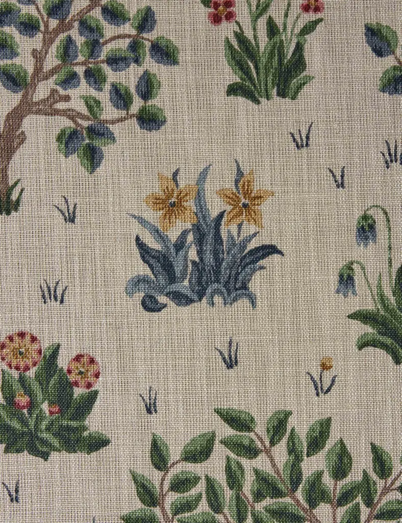 The work of 19th-century icon William Morris made Morris & Co. nearly synonymous with the Arts & Crafts movement, prioritizing artistry and quality in the design and making process. This textile is inspired by their beloved medieval tapestries, featuring a delicate pattern of trees and foliage. The viscose fabric is suitable for blinds, cushions, drapes, and upholstery.