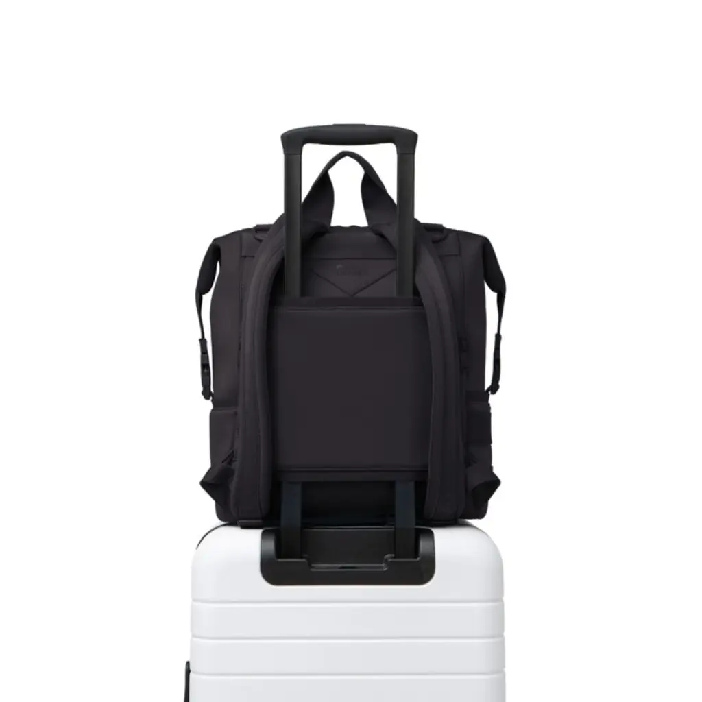 Indi looks like a stylish everyday bag and acts like a super functional diaper backpack that's cleverly designed to hold all of your baby's essentials. (That's a total win-win for parents.) Perfect for families on the go, this diaper backpack has tons of storage space for your little one's diapers and clothing, plus pouches and pockets to hold toys, snacks, wipes, etc. It also includes a laptop carrier, mini changing mat, luggage sleeve and two key leashes. Plus, premium neoprene construction gives it the durability and versatility busy parents need.
