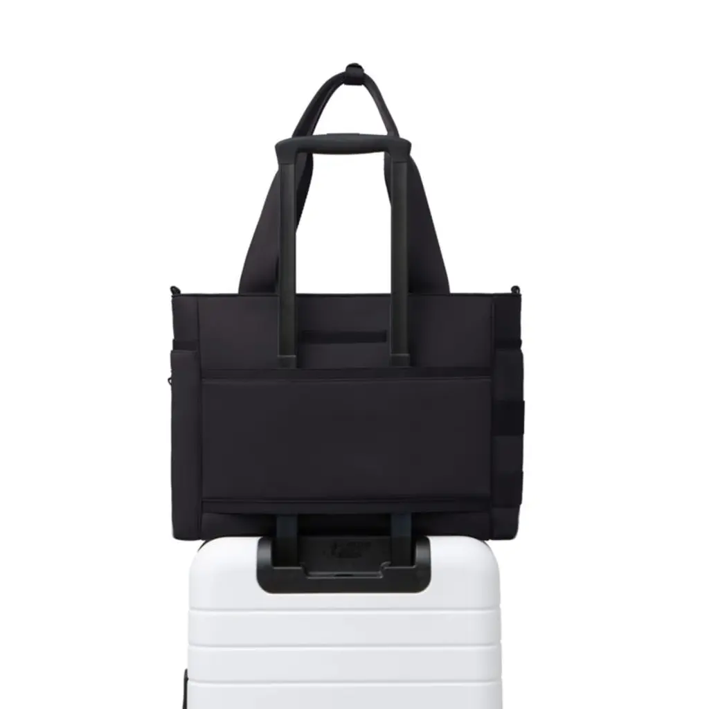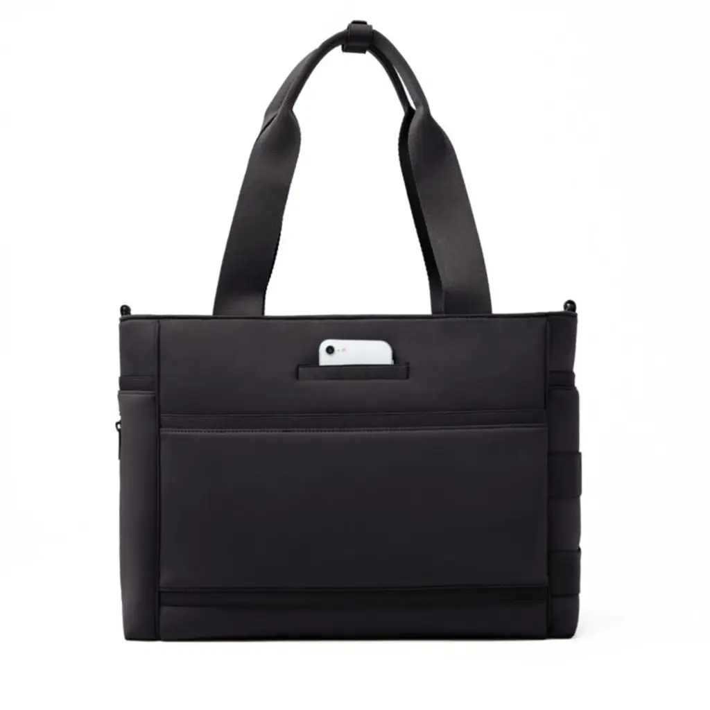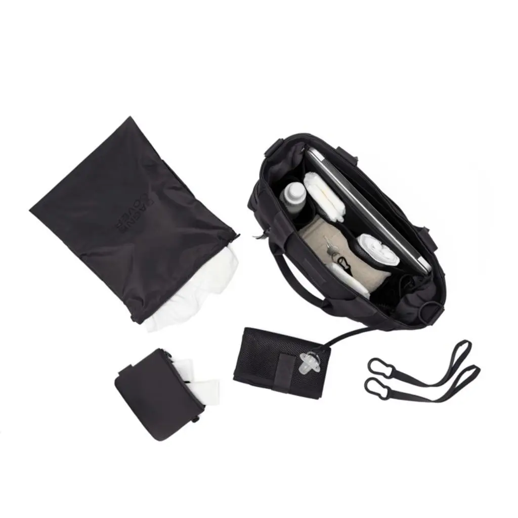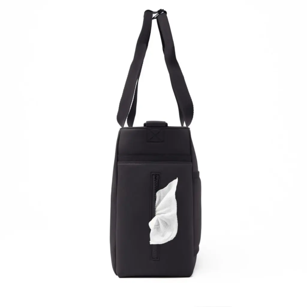 Wade looks like a stylish tote and acts like a super functional diaper bagin other words, it's just right for on-the-go parents who need to carry every little thing for their newborn or toddler. This super functional diaper tote includes pockets for wipes, bottles, baby toys, etc. It also has tons of parent-friendly storage features, from an exterior phone pocket and interior pouches to a pair of handy key leashes. Plus, premium neoprene construction gives it the durability and versatility busy families need.