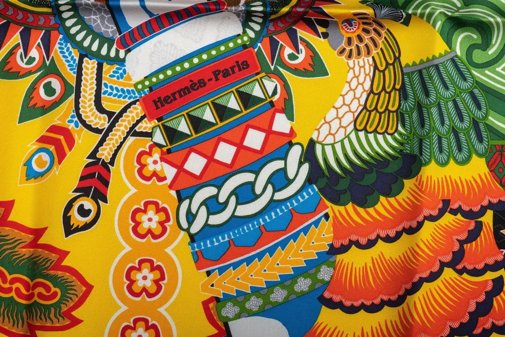 Hermès brand new black and multicolor pattern silk scarf. Hand rolled edges. Comes with original box.