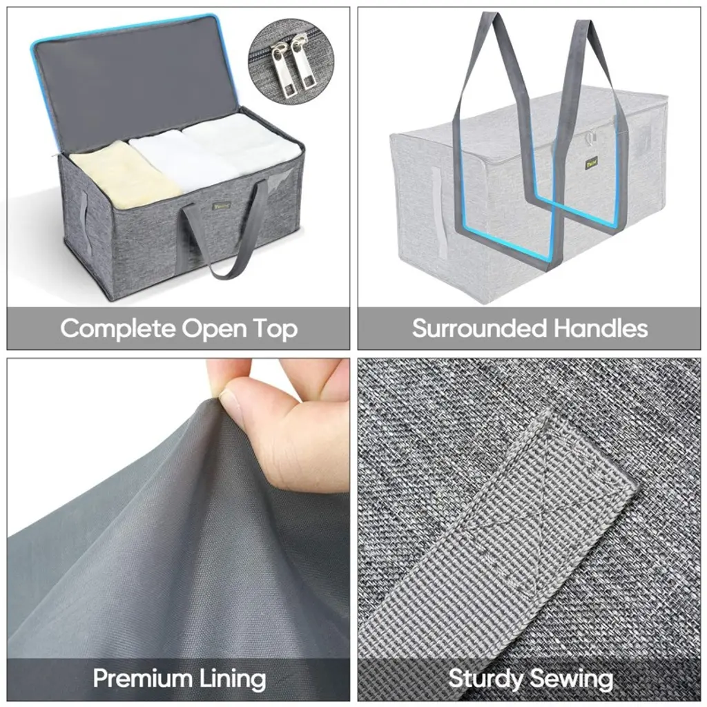 Homlux Extra Large Oxford Storage Tote Bag With Zipper Washable Foldable Gray