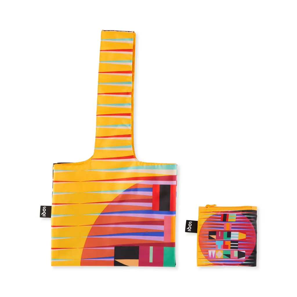 MoMA Exclusive: Bring a bit of art along on your daily journeys with this Recycled Polyester Tote Bag featuring the work of New York-based Jeffrey Gibson. This multi-disciplinary artist is featured in the MoMA exhibition Woven Histories: Textiles and Modern Abstraction, on view April 20 through September 13, 2025. Made from water-resistant recycled polyester taffeta that’s Green Circle®-certified, each one is printed with a reproduction of a collage by Gibson which references two artworks, THE FUTURE IS PRESENT (2019) and IF I RULED THE WORLD (2019), which are represented in MoMA's collection. Gibson works meld Indigenous and Western influences to form a hybridity of aesthetics. This lightweight bag is especially suited for trips to the supermarket—it can hold up to 44 lbs—and folds into a small zippered pouch. Available exclusively to our customers, the Jeffrey Gibson Recycled Polyester Tote Bag measures 16.5h x 19.7"w with 21l x 2.75”w strap and 10.6” strap drop. The pouch measures 4.75 x 4.75”sq.
