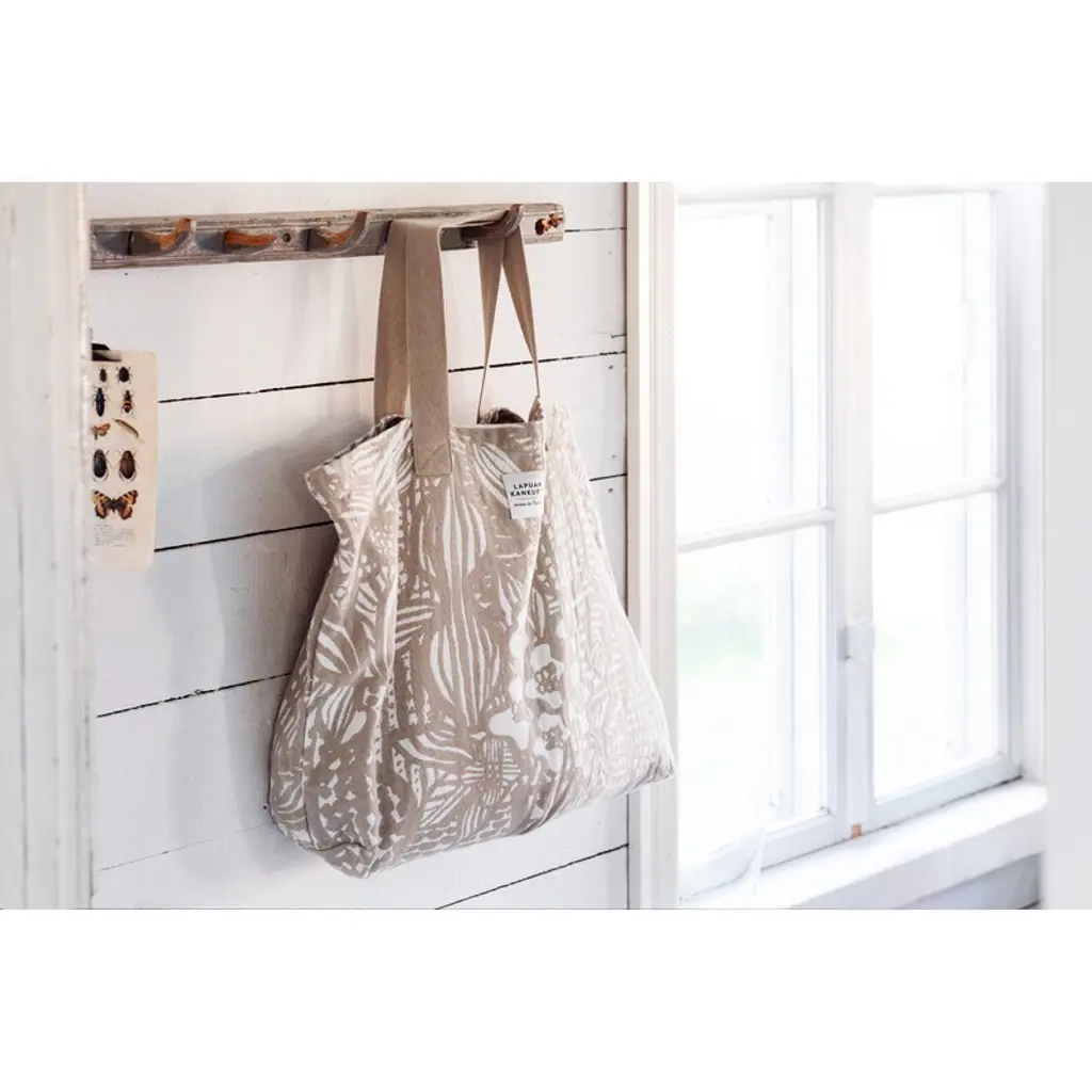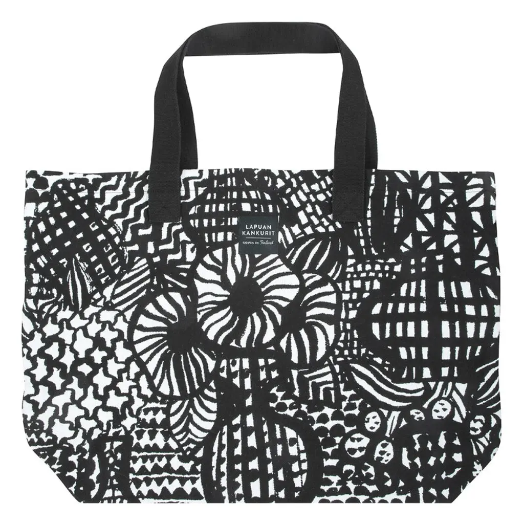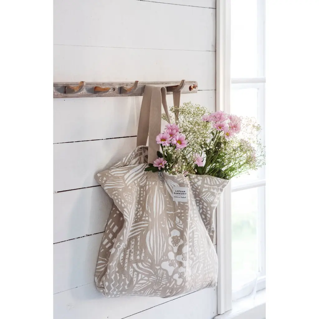 With the Veranta tote bag by Lapuan Kankurit, you can carry the carefree spirit of summer cottages and childhood memories wherever you go. Made from washed organic cotton, the roomy and durable bag is adorned with Matti Pikkujämsä’s graphic pattern, where vintage vases, garden-picked flowers and grandma’s lace doilies come to life. The Veranta tote bag is the perfect companion for beach days, market strolls or weekend getaways.