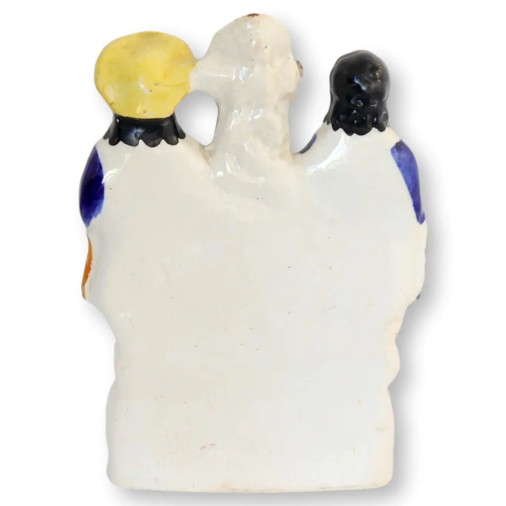 Unusual Staffordshire figure with two children and a water pitcher. This figure is in celebration of the arrival of clean water following the "Great Stink" and Public Health Act of 1848. It is one of a few selected examples on Wikipedia's Staffordshire information page. As with most early Staffordshire, there is no maker's mark.